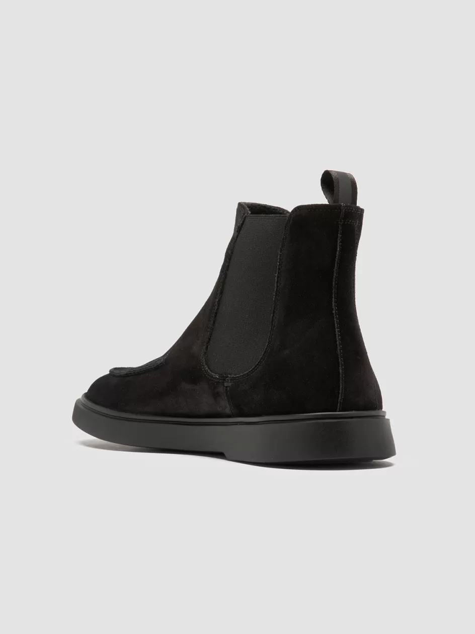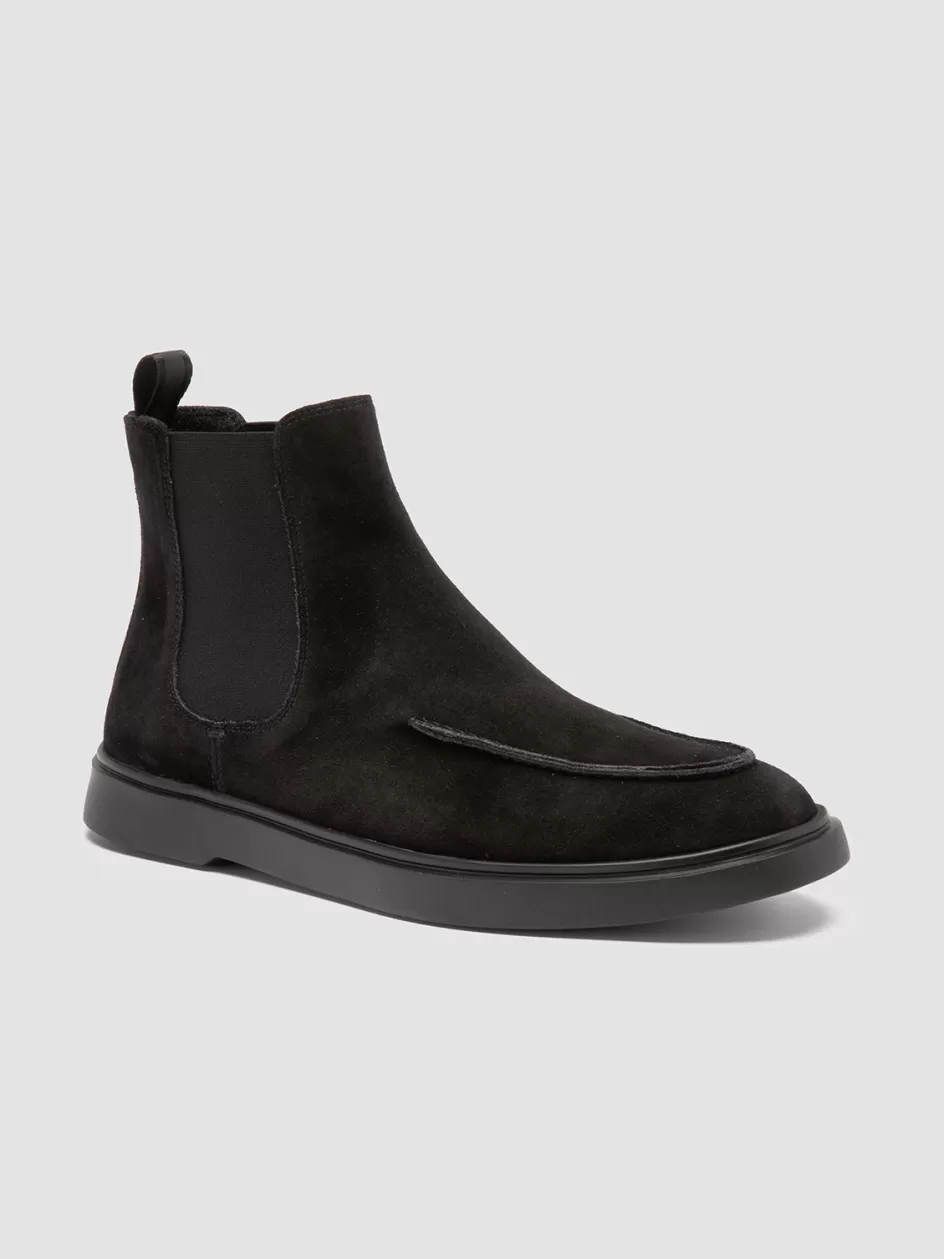Exuding sleek sophistication, the black Bones 011 Chelsea boots are handmade in Italy and blend supple suede with stretchable side panels. Grounded by a dark rubber sole for durability, they’re finished with the signature heel pull tab.