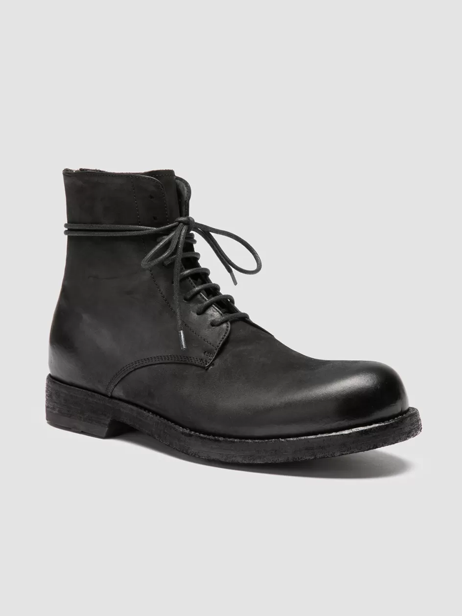 The Bulla DD 102 boots harmoniously unite form and function. Crafted in Italy from durable black leather, they undergo a series of intricate manual processes, including a deep dye treatment, which gives them a unique 3D character.