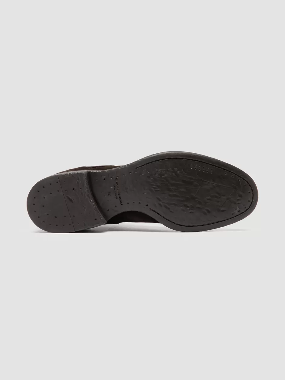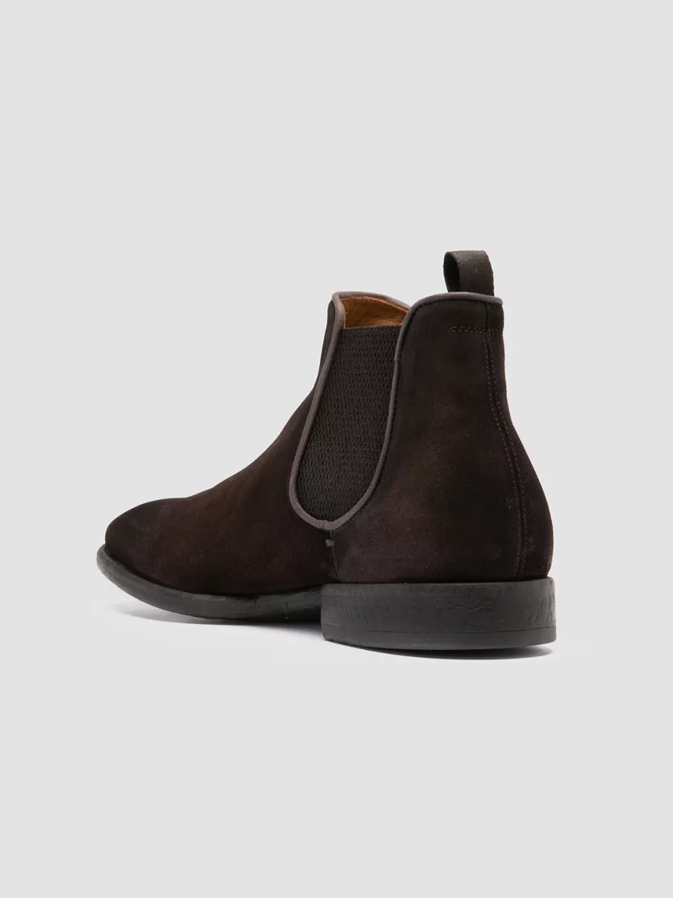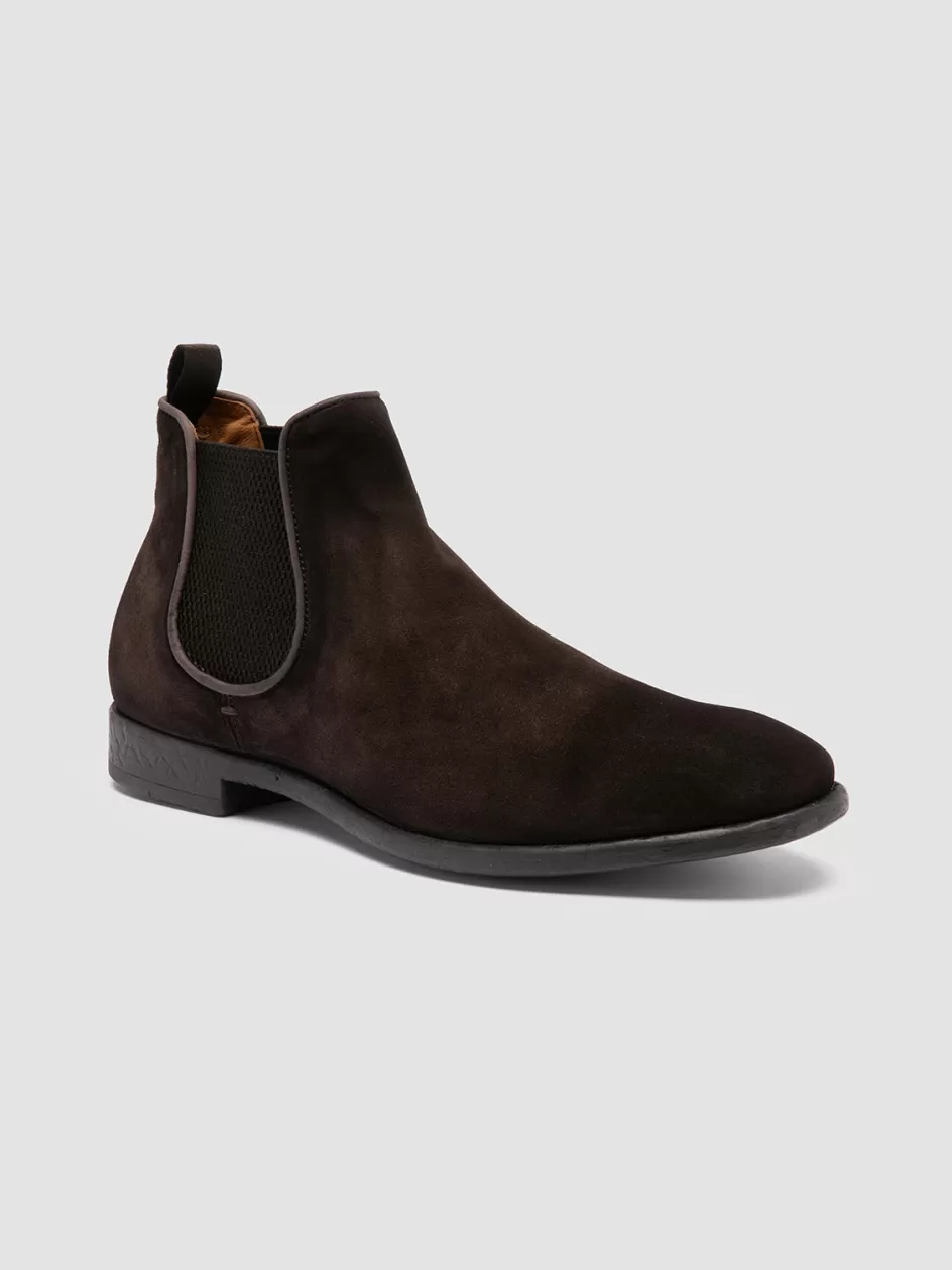 Our Ceton Chelsea boots feature a decidedly comfortable and versatile design. Handcrafted by our amazing craftsmen they feature an airbrushed suede upper in dark brown shades textured fabric side inserts a grosgrain heel pull tab and a durable caoutchouc sole.