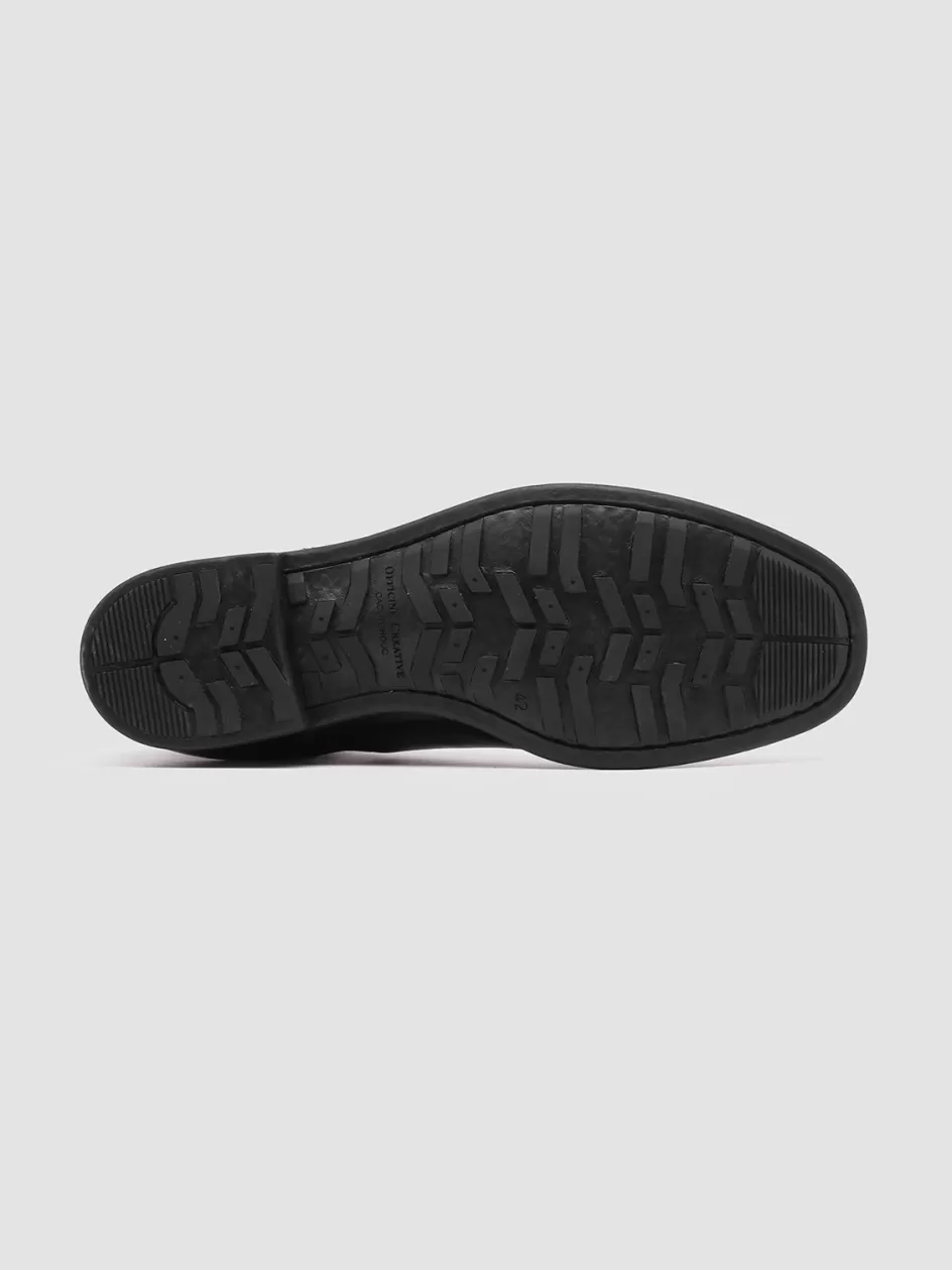Chronicle Chelsea boots feature a versatile and effortless style with refined contemporary vibes. Made by our skilled craftsmen from smooth black leather they reveal a silhouette with a rounded almond toe elasticized side inserts for a perfect fit two original black grosgrain pull tabs and a caoutchouc sole with stacked heel and grip bottom.