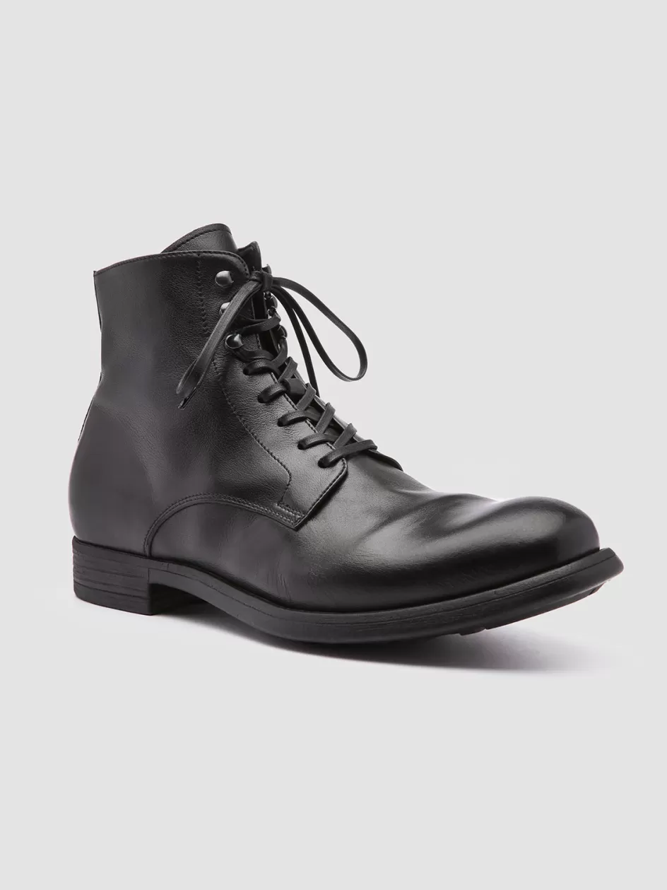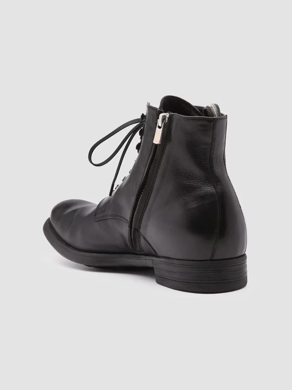 Made from very soft high quality black leather our Chronicle boots feature a versatile style enhanced by flawless handcrafted finishes. They have a rounded almond toe front fastening with tone-on-tone laces a tactical side zip closure our signature grosgrain heel pull tab and a caoutchouc grip sole with stacked heel.