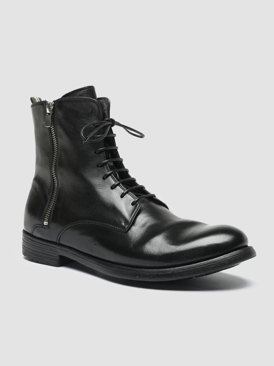 Embodying our commitment to quality and durability, these Hive 053 black lace-up boots are made from washed and brushed supple leather and piece-dyed for an authentic, lived-in feel. The side zips allow you to pull them on and off with ease.