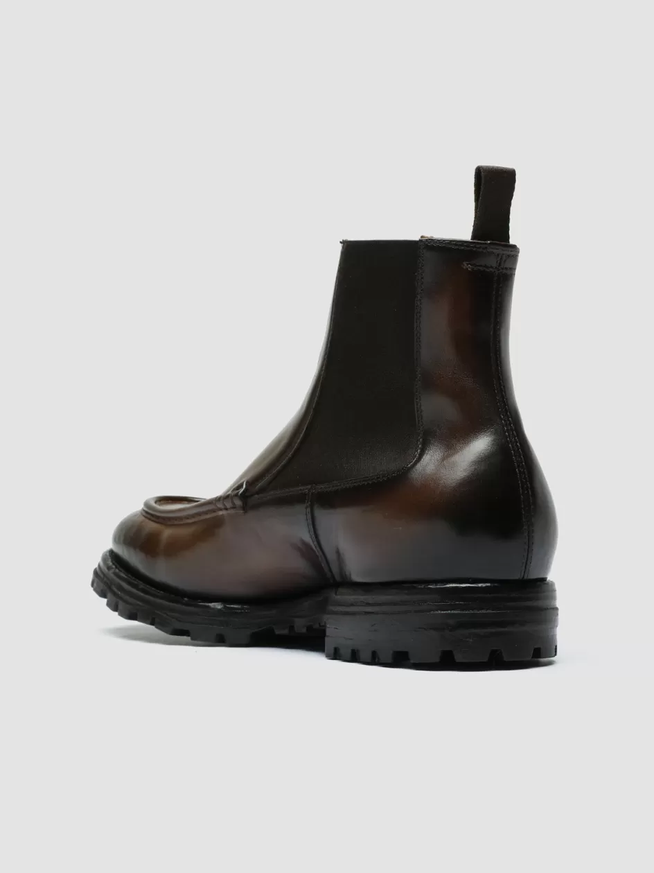 Our Vail 017 boots hit the sweet spot between Chelsea boots and hiking styles; borrowing the traditional apron-toe detailing and lugged soles from the latter, they’re made from supple brown leather and fitted with elasticated sides and pull tabs for easy wear.