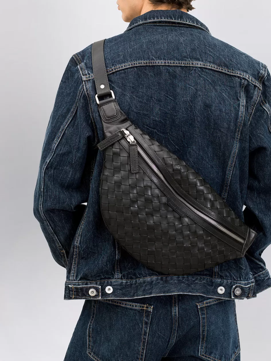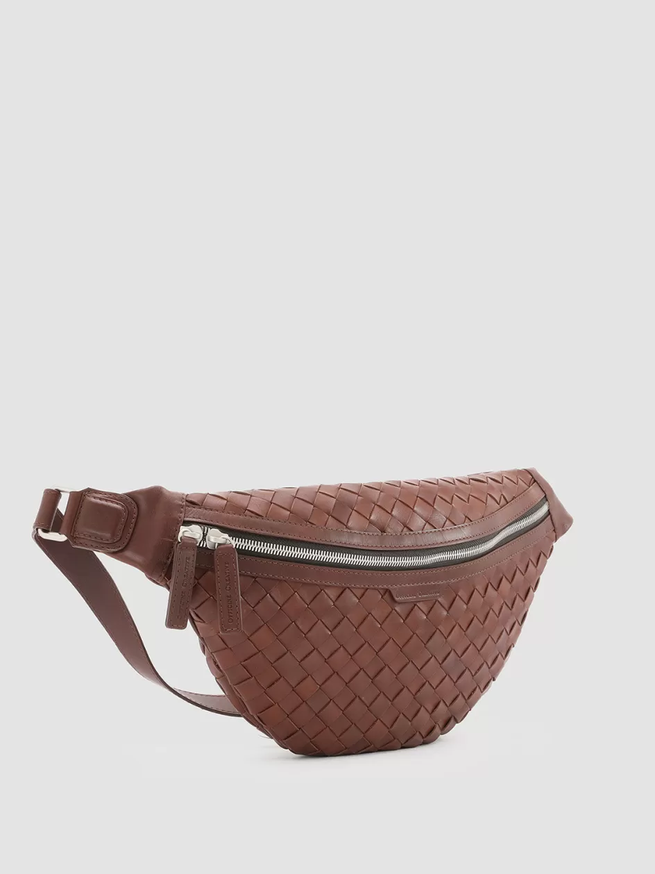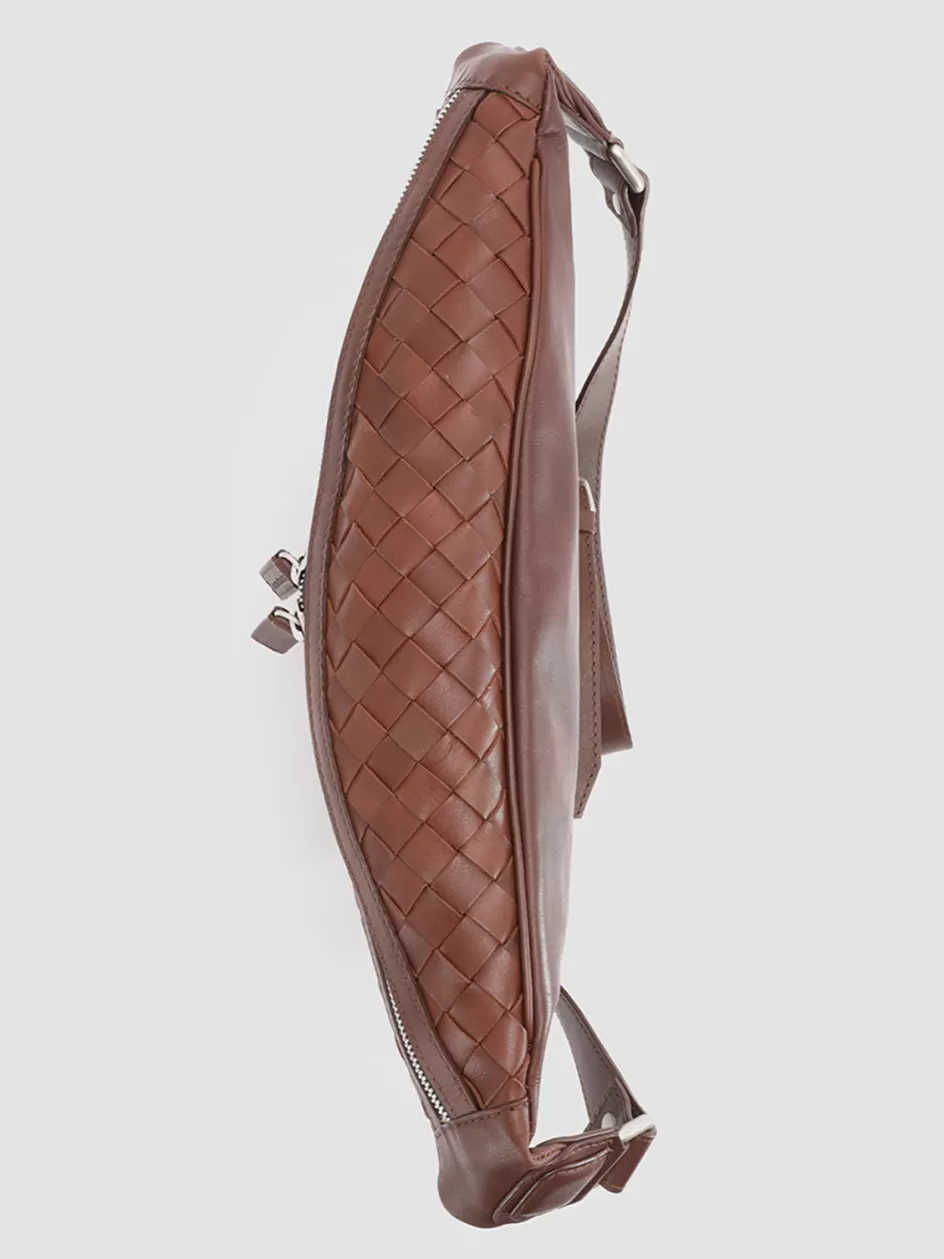 A perfect contemporary accessory to show off at the waist or as a crossbody bag our Armor belt bag stands out for its flawless craftsmanship and retro mood design. It’s made from brown fine leather and has a main zippered compartment adjustable strap with a classic square buckle and gold-tone metal hardware.