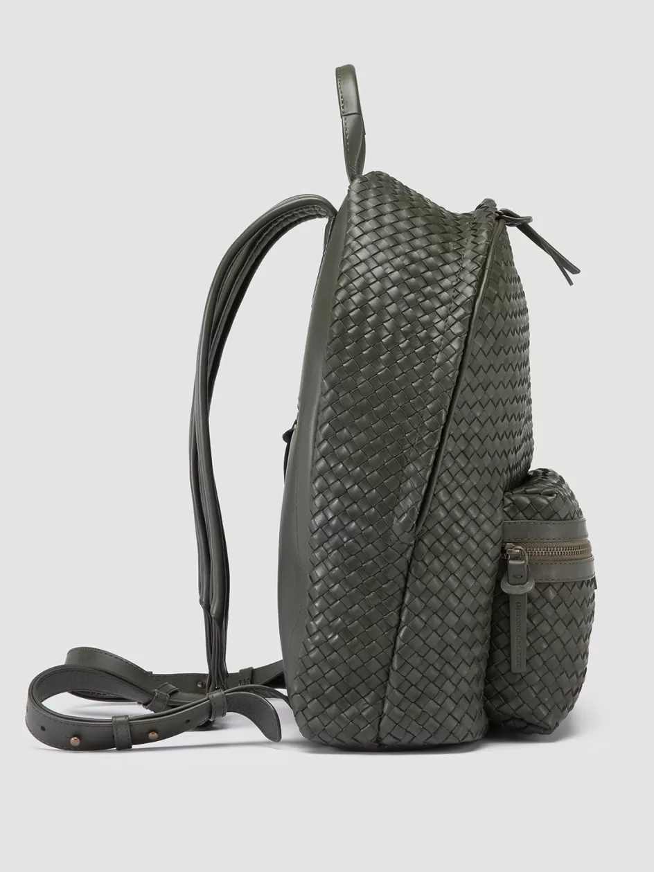 The OC Class 069 backpack combines functionality with Italian craftsmanship. Handwoven in rich green leather, it features a structured design, a spacious interior with secure zip fastenings and comfortable shoulder straps.
