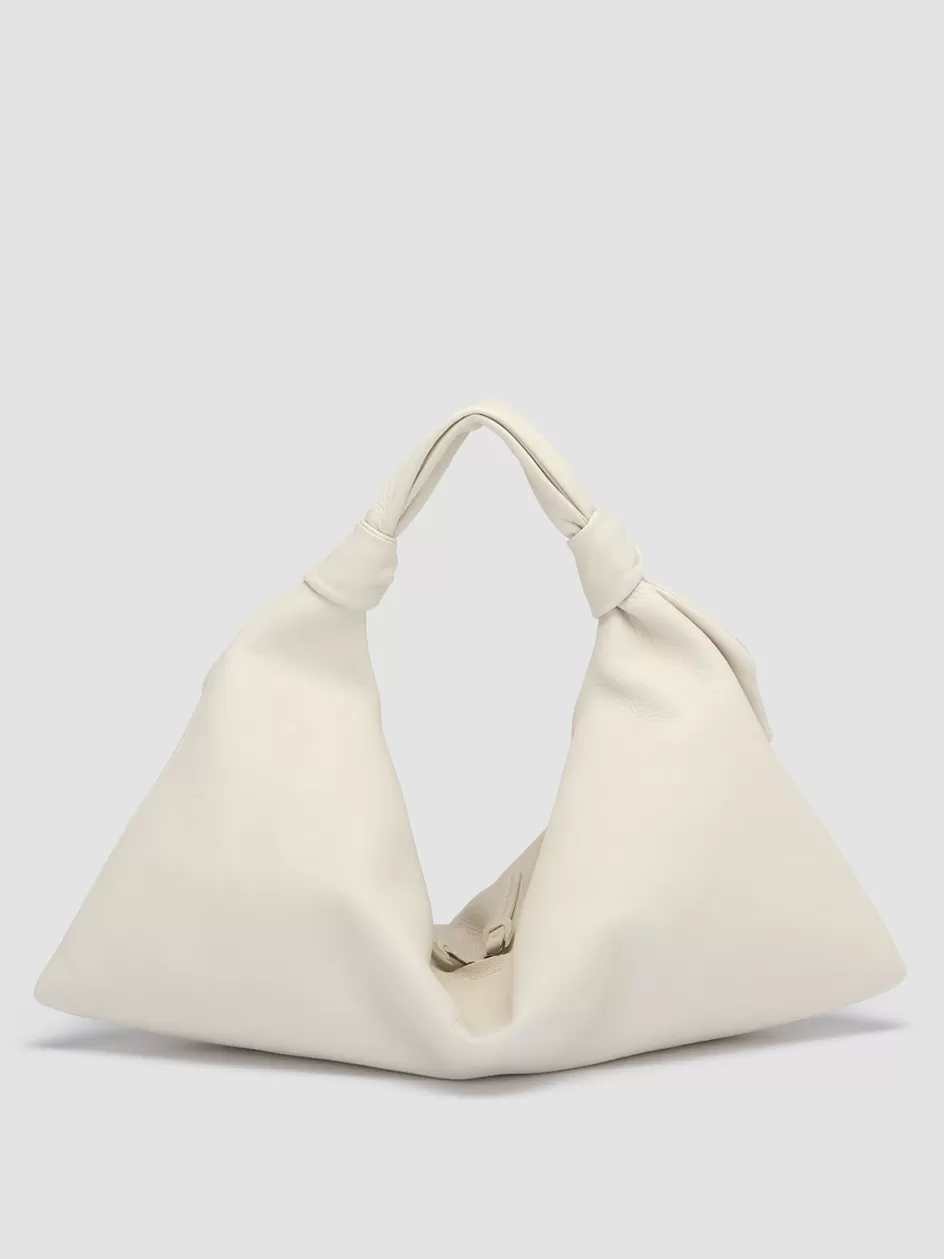 Handcrafted from off white grained leather, our BOLINA large hobo bag features a soft, geometric silhouette with BOLINA on the handle and zip fastening. The interior is lined in canvas and reveals a zipped pocket and tab with embossed lettering logo.