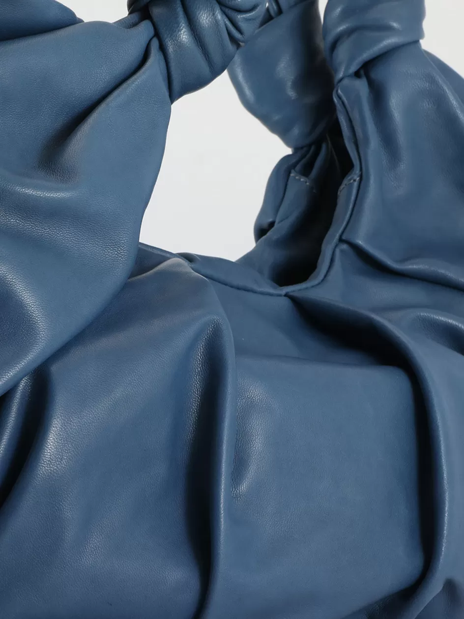 A sophisticated and timeless style marks our super soft BOLINA bag in fine smooth blue leather. Handcrafted by our skilled artisans it features a rounded silhouette enriched by pleats at the sides decorative BOLINA at the two upper handles and a concealed magnetic fastening.