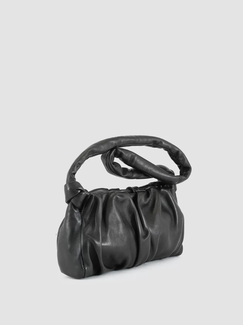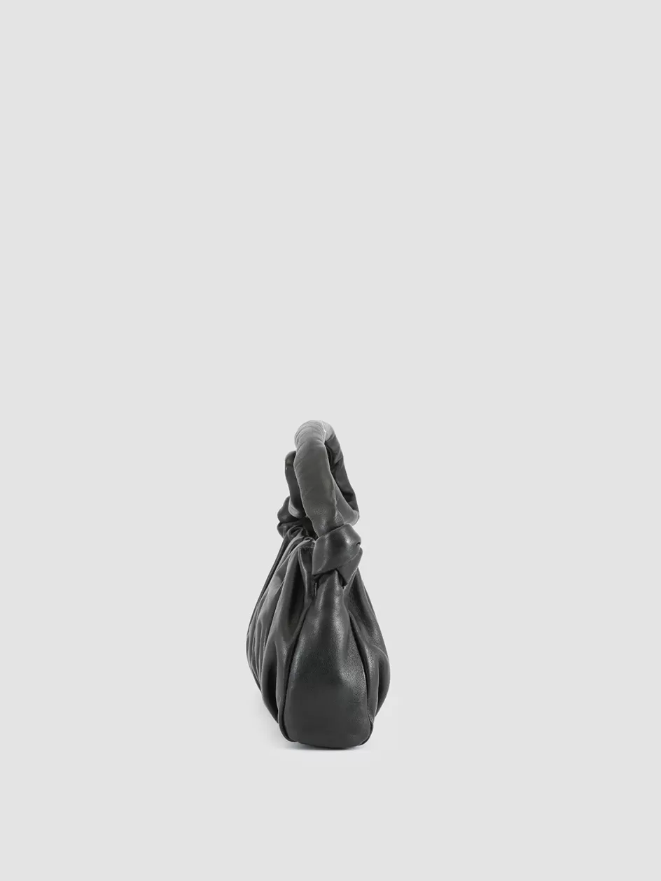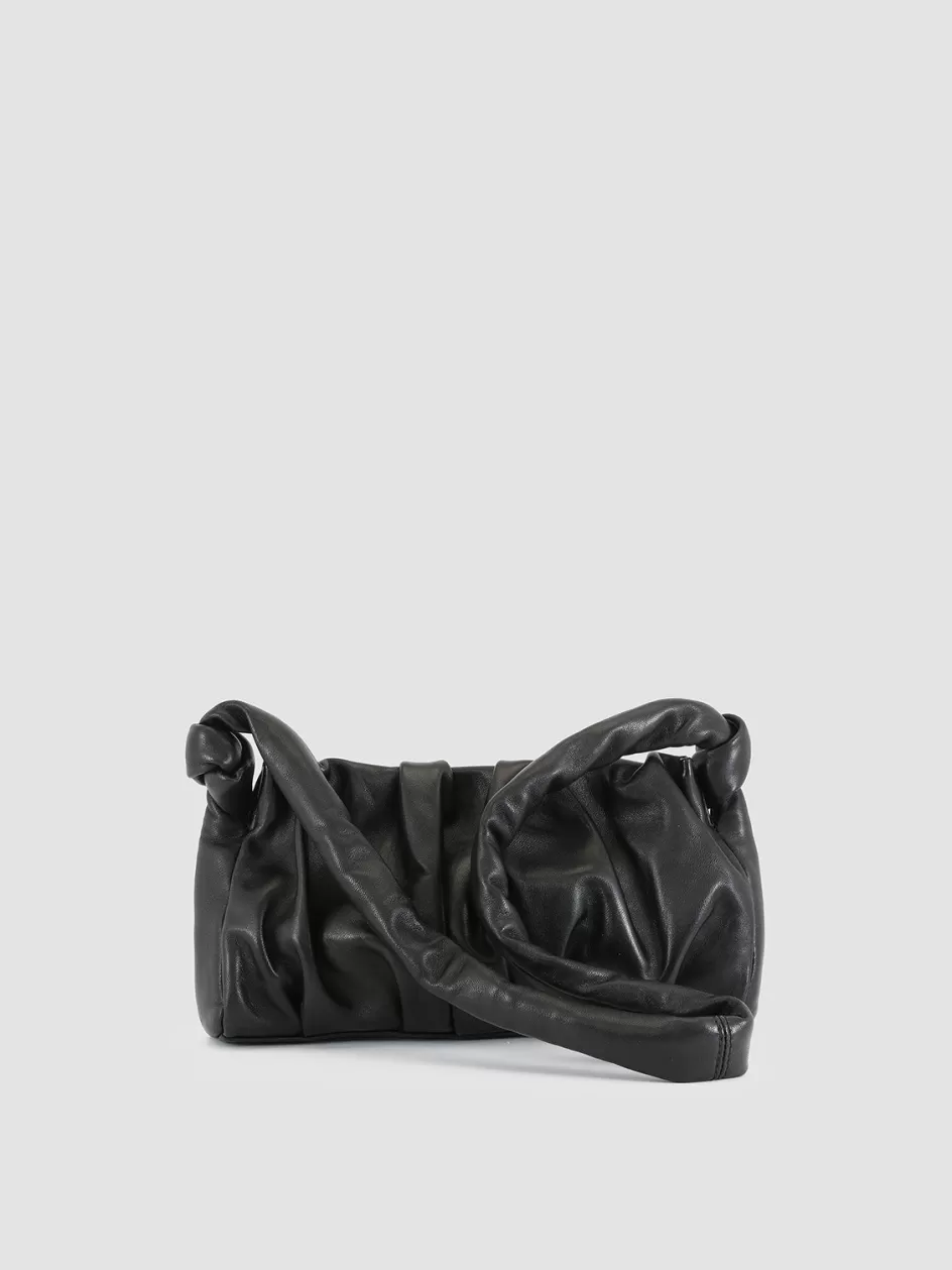 The Bolina 21 shoulder bag features supple black leather that gracefully gathers into lush drapes along the minimal silhouette. The shoulder strap, knotted at each end, adds a unique and relaxed appeal to the bag’s distinctive look.
