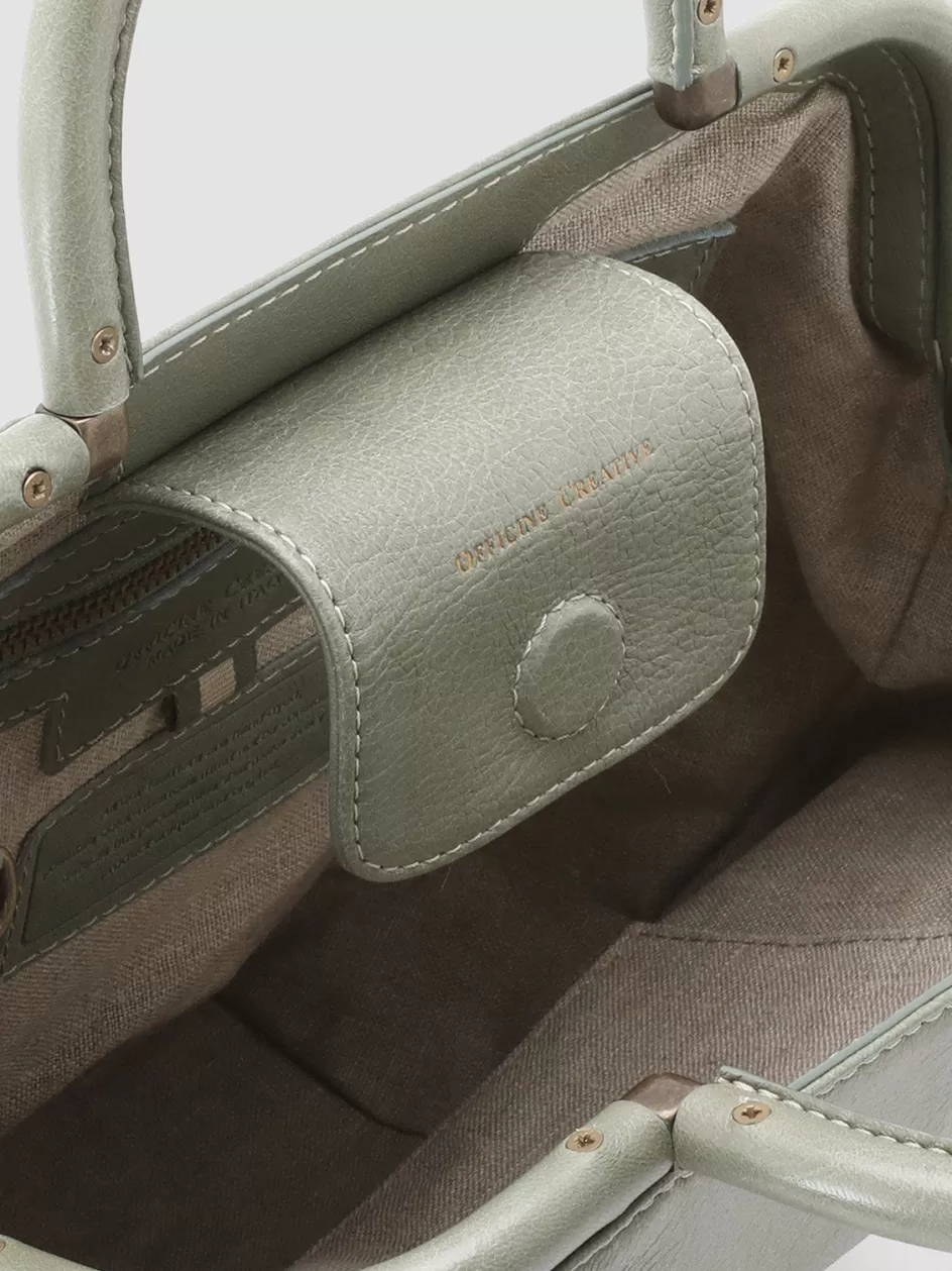 The Helen 18 shoulder bag in supple grey leather is handcrafted in Italy, featuring a unique sculptural shape that conveys a modern yet timeless aesthetic. Equipped with two top handles and a detachable shoulder strap, the interior is lined in fabric and secured with a magnetic closure.