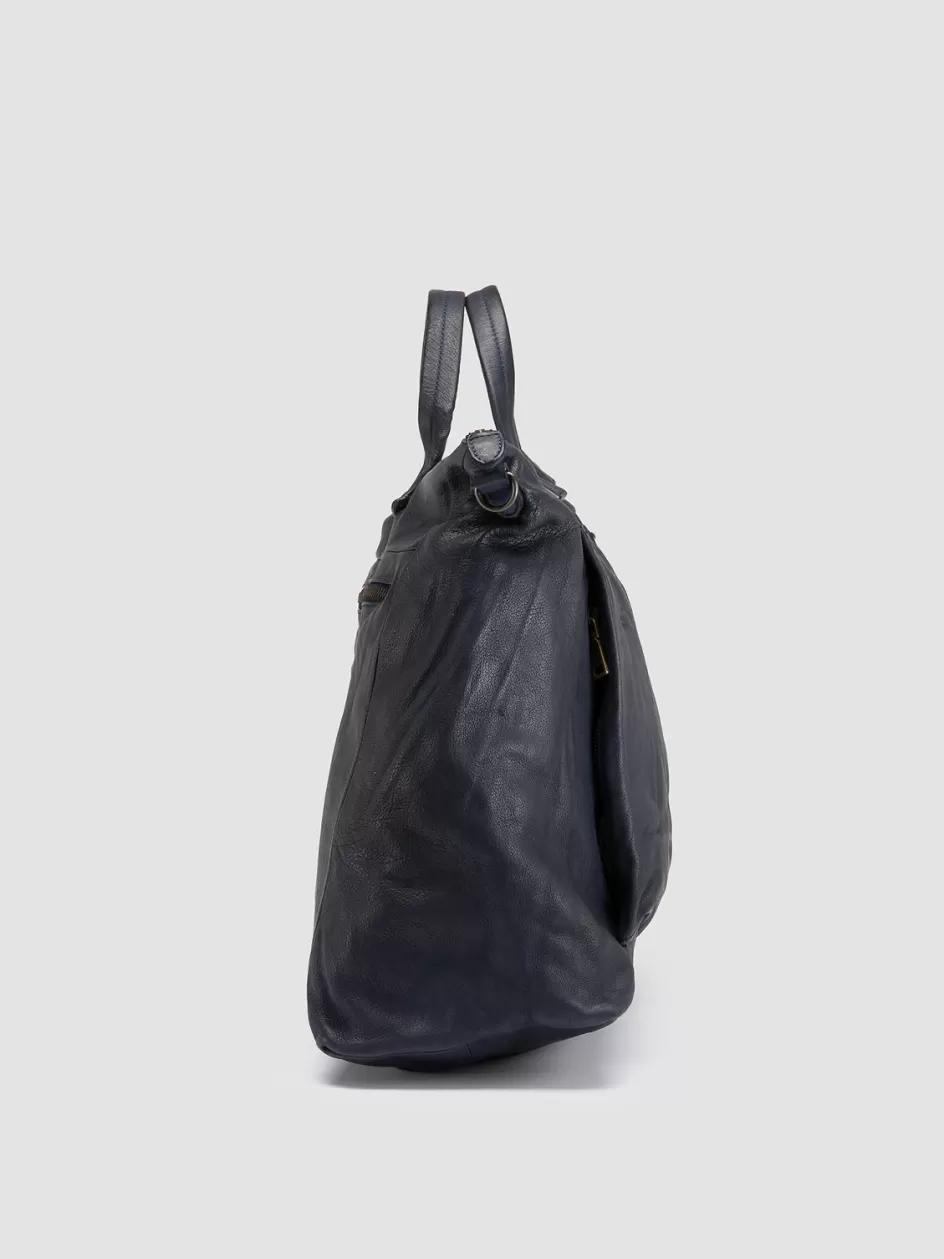 Embodying the essence of classic travel luxury, the Helmet 044 weekender is handcrafted in Italy in rich blue leather. The design features a spacious interior with multiple pockets, top handles and a detachable strap.