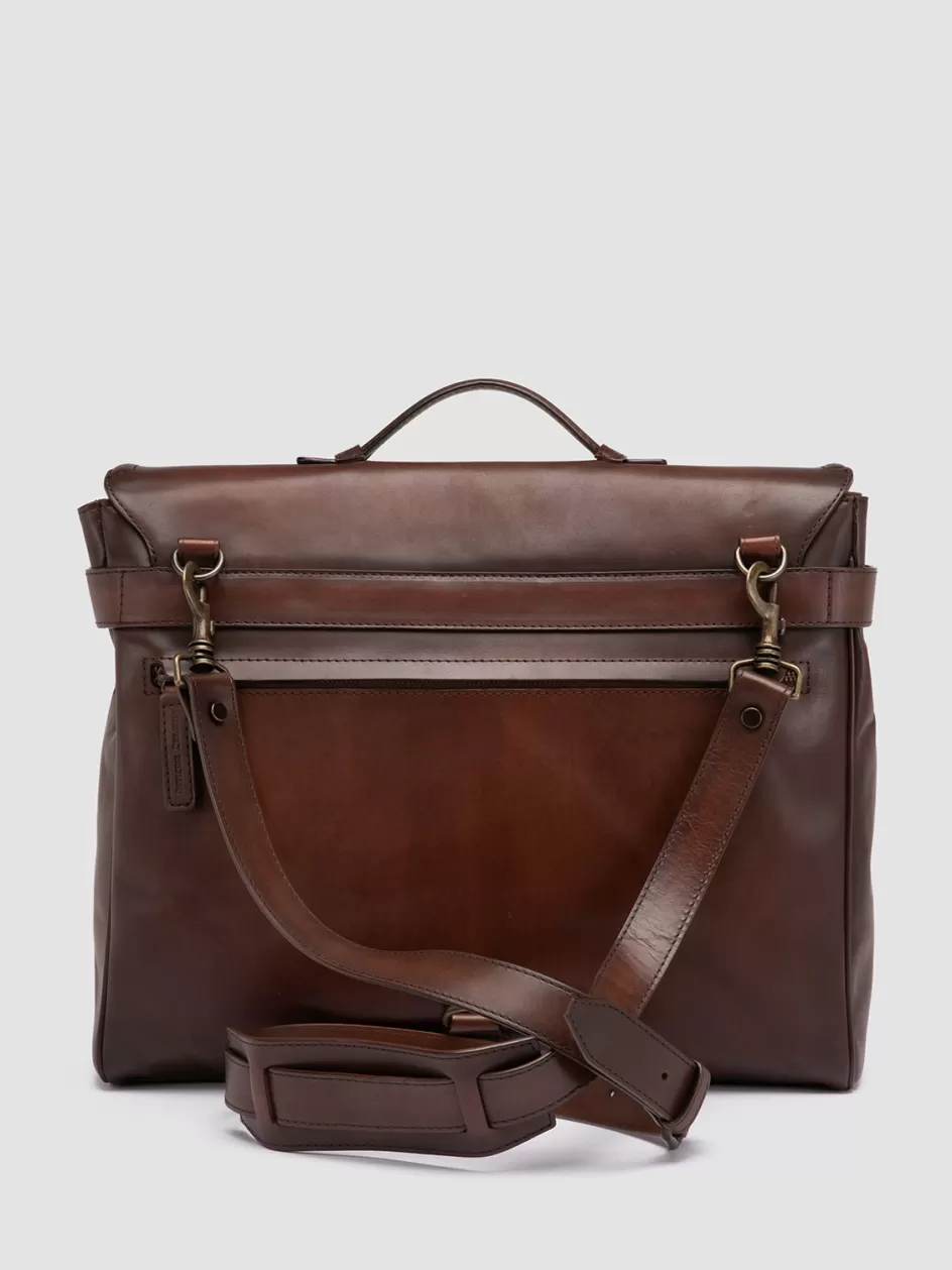 The Jerome 003 briefcase merges timeless flair with functional design. Handmade in Italy in brown leather, it features a top handle, a secure front clasp and a structured storage space, perfect for the discerning professional.