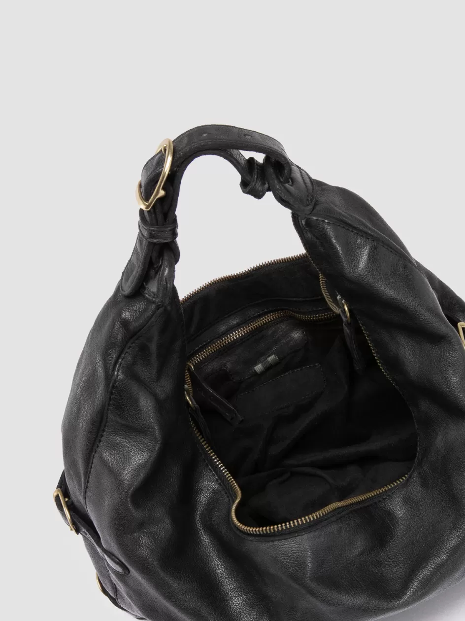 Handmade in Italy from black leather, the Julie 008 shoulder bag blends retro aesthetic and contemporary functionality, featuring elegant metal buckles, a zip closure and an internal pocket for the most precious essentials.