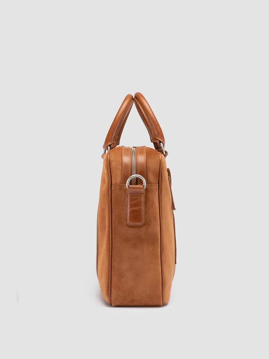 Perfect for business looks, our Quentin artisan bag is spacious and practical. Handcrafted in Italy, it features a suede body with leather profiles, two top handles, a detachable shoulder strap, a vertical front zip pocket, silver-tone metal hardware and logo lettering on the sliders.