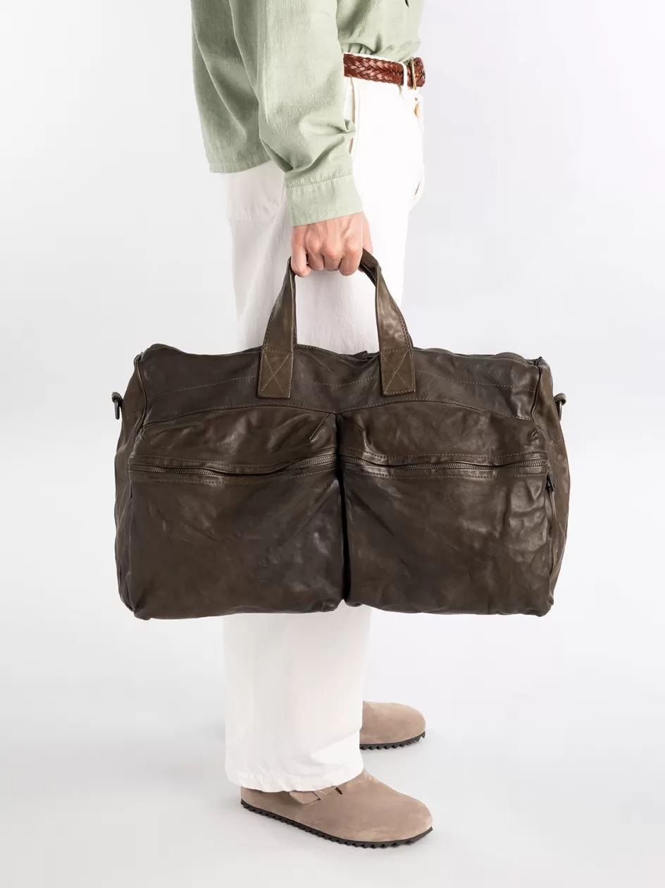 Our Recruit 013 weekend bag will work just as well for a weekend away as it does for your daily commute and trips. It’s made from supple dark brown leather and is piece-dyed to achieve a broken-in appeal that highlights the hide’s durable and three-dimensional properties. The two-way zip fastenings allow for easy reach, while the detachable shoulder straps enable you to wear it cross-body while on the go.
