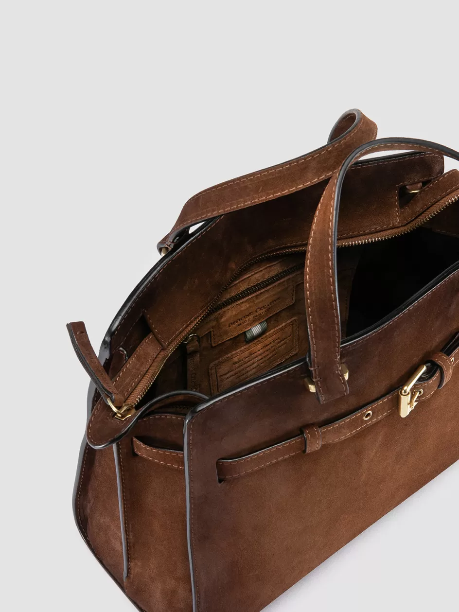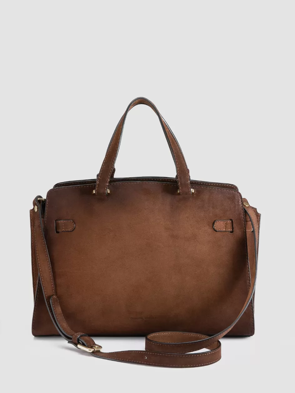 The Saddle 020 handbag showcases the timeless elegance of airbrushed suede, rendered in a warm brown hue. Handmade in Italy, it features a top handle, polished gold-tone hardware and a detachable shoulder strap.