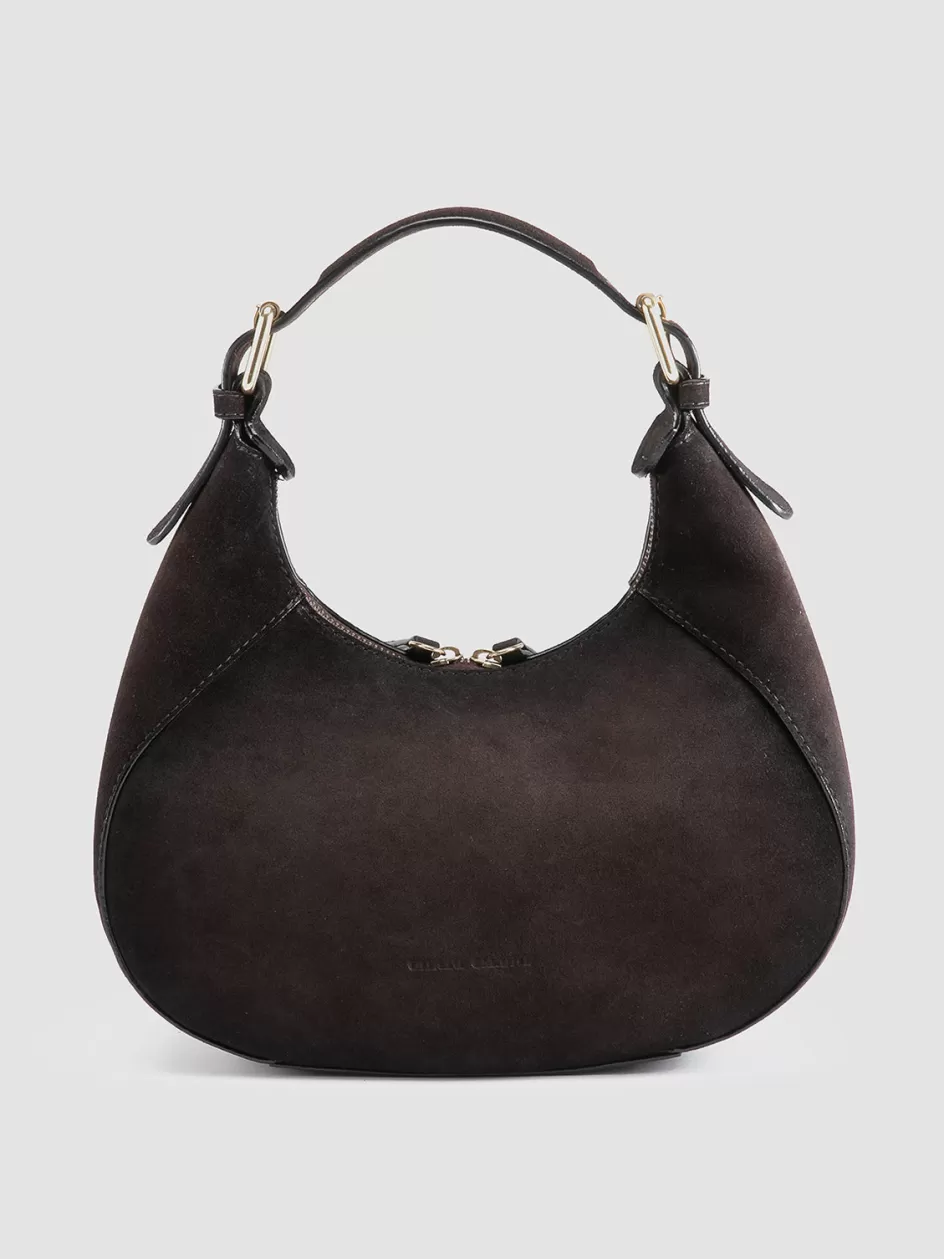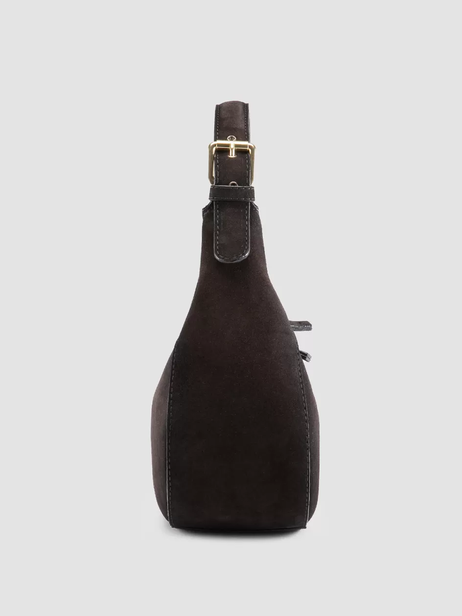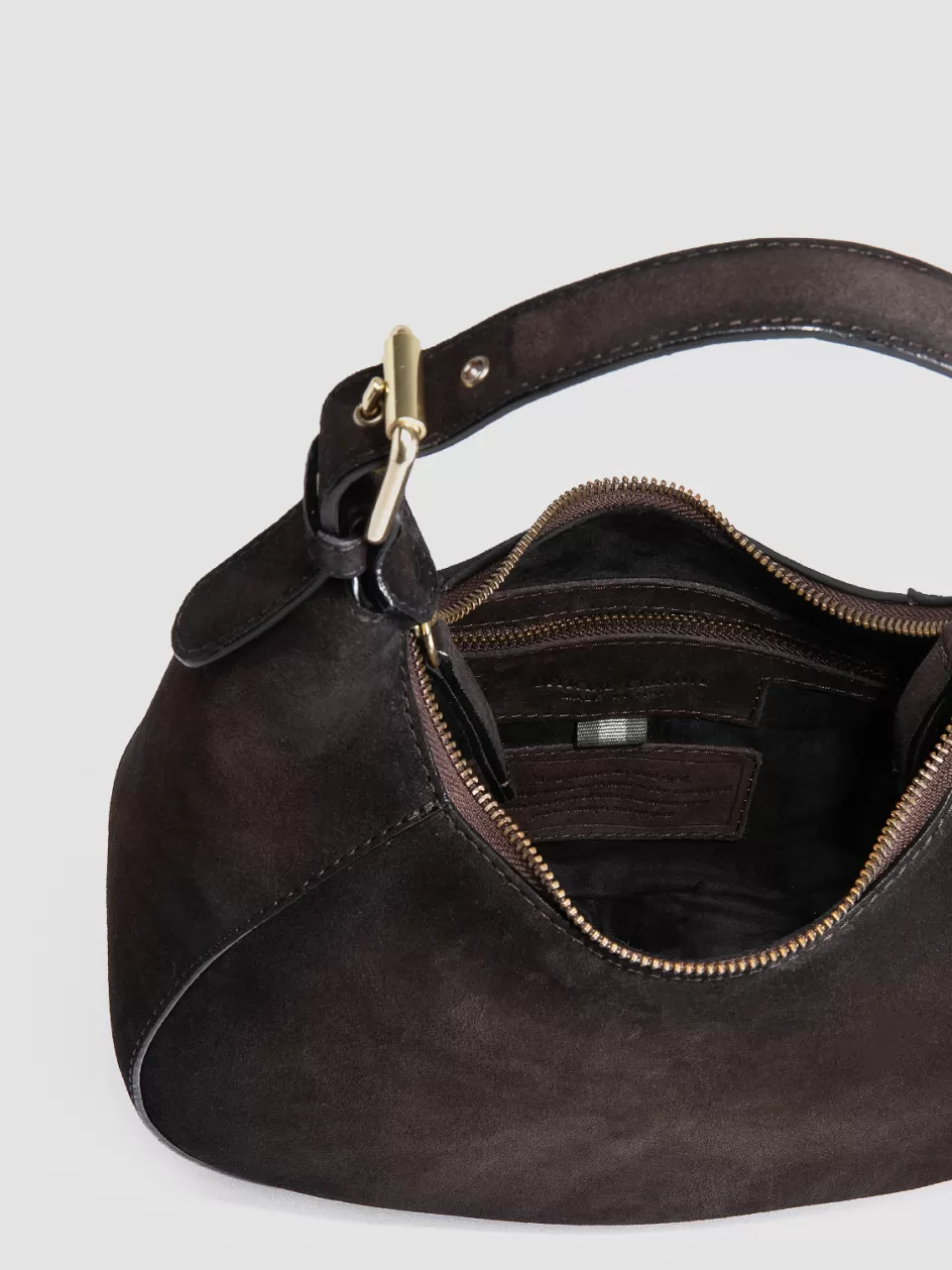 Handcrafted in Italy, the Saddle 022 bag is a testament to understated elegance. The brown suede surface, highlighted by a subtle airbrush effect, features a top handle with gold-tone buckles for a classic touch and a dual zip system.