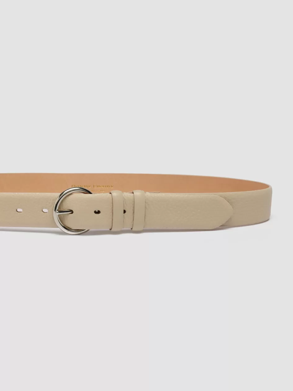 Made by our artisans from fine sand-tone leather, our OC Strip belt features a round silver-tone metal buckle and our logo lettering embossed on the inside. A versatile and timeless accessory, great to combine with leisure or formal looks depending on the occasion.