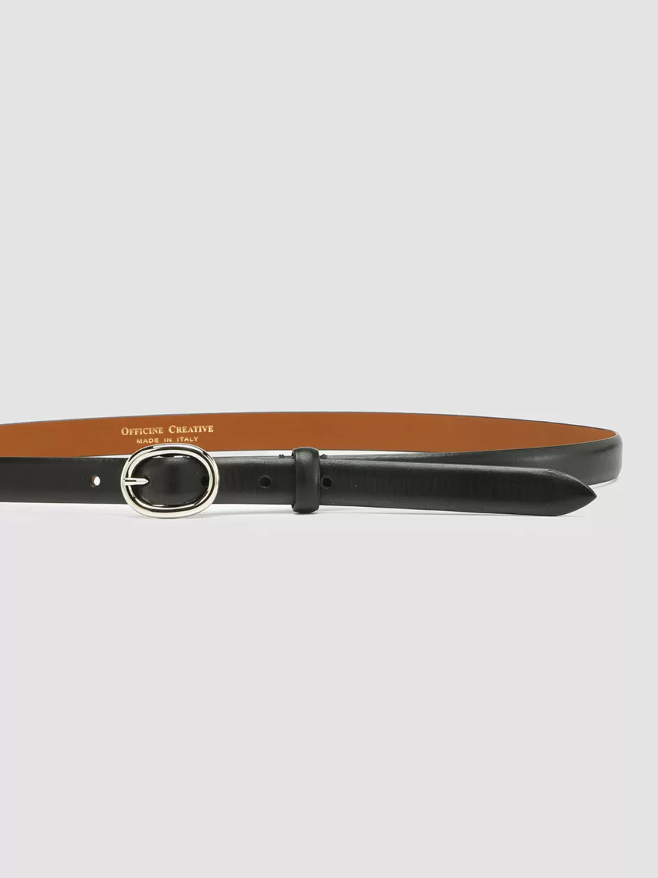 Our slim OC Strip belt is a versatile and refined accessory, perfect to style with leisure and formal looks. Handcrafted from fine black leather, it features an oval silver-tone metal buckle and gold-tone lettering logo embossed on the inside.