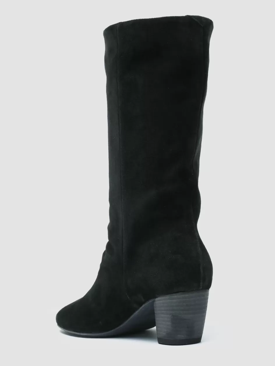 Embrace timeless sophistication with the Beth 010 Boots, handcrafted in Italy. Featuring a comfortable slanted heel and a side zipper for ease of wear, these boots in soft black suede offer a versatile aesthetic that gracefully complements any ensemble, from casual daywear to evening elegance.