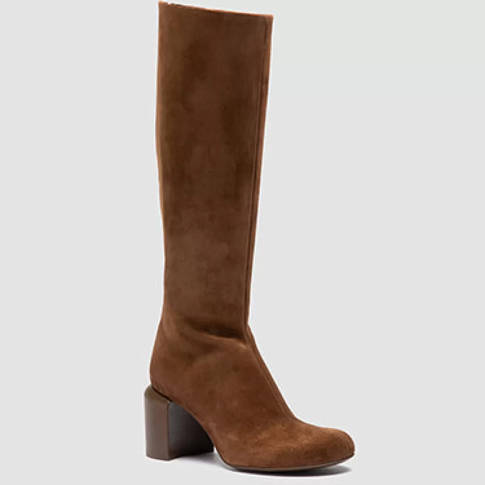 Elegantly wrapping the calf in sumptuous brown suede, the Elinor 006 epitomises timeless grace. Handcrafted in Italy, these zipped boots feature an inverted heel and a rubber-injected sole, offering both height and unparalleled comfort.