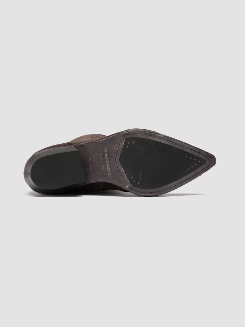 Handmade in Italy, the Noelie DD 104 brown suede boots exhibit a sleek pull-on design. Each pair is deep-dyed for an authentic worn-in look, mounted on a rubber-injected sole with a slanted heel, for timeless elegance and durable modernity.