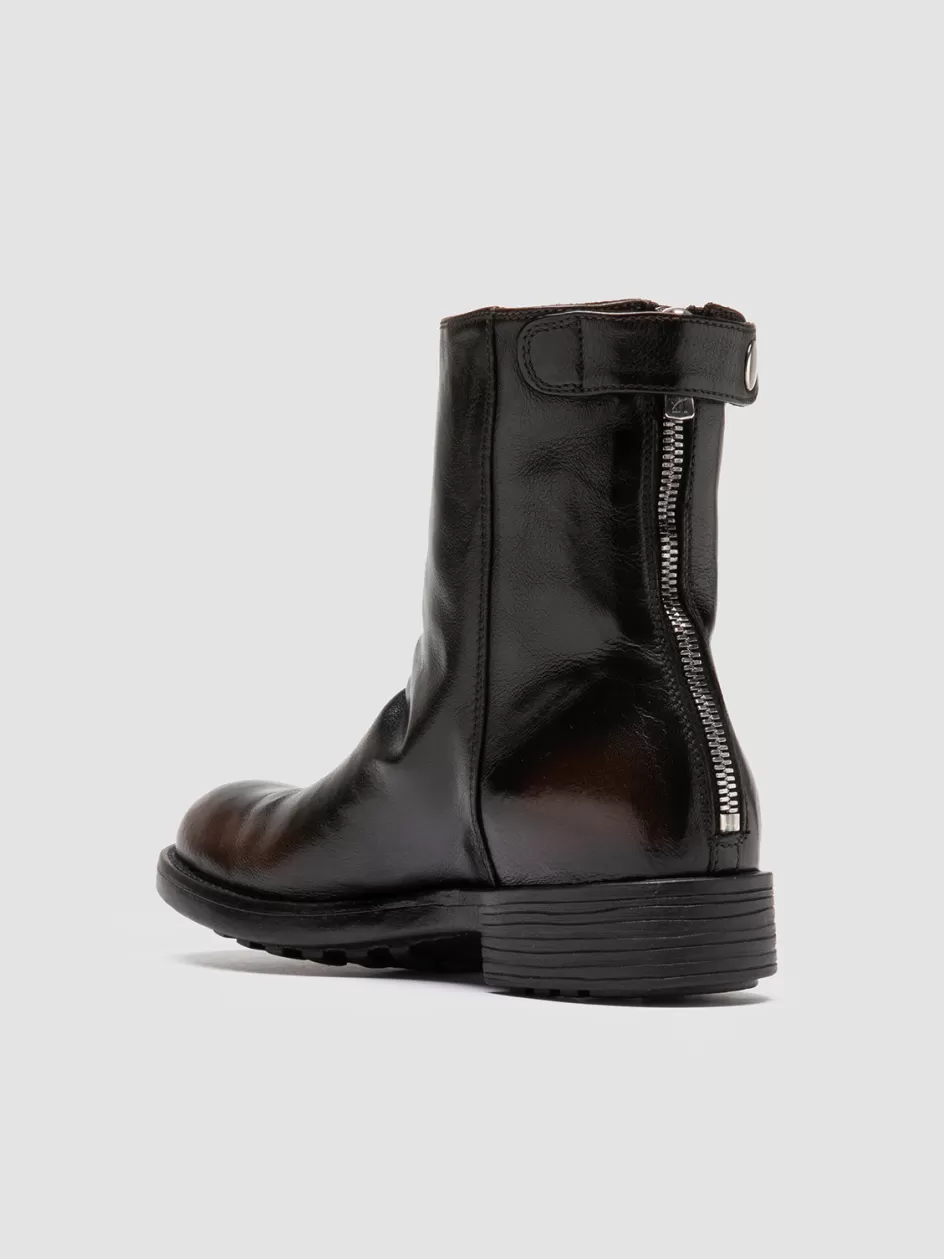 The Sergeant 104 zipped boots are a celebration of elegance and versatility. Handcrafted in Italy, these brown leather boots feature a caoutchouc sole and an airbrushed, deep-dyed finish that gives each pair a distinct character.