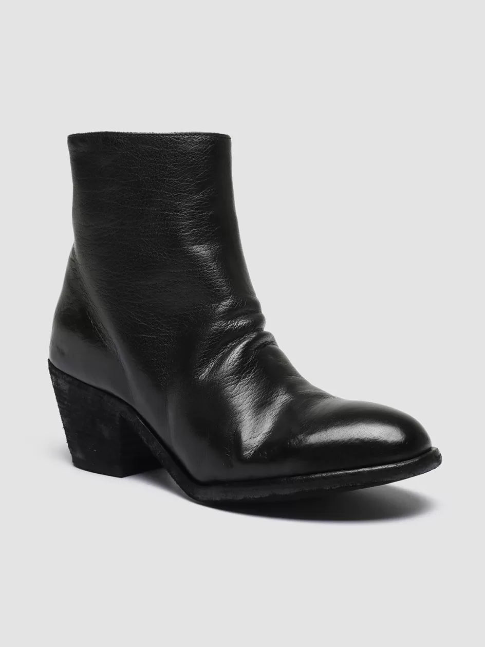 Handcrafted from supple black leather, our versatile Sherry ankle boots feature an almond toe silhouette and a Cuban-style stacked midi heel. They reveal a comfortable side zip fastening and a leather sole with rubber bottom.