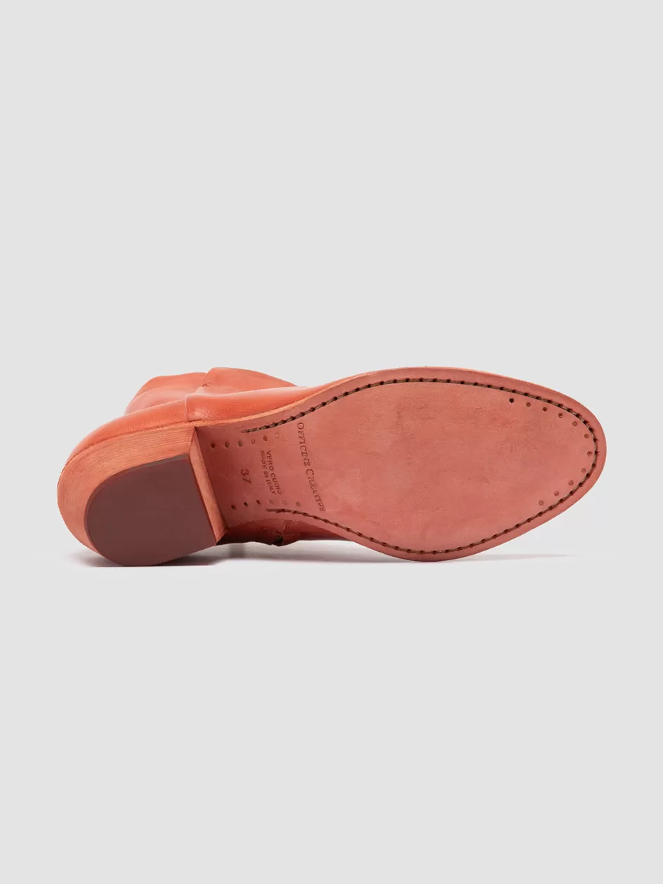 Our sophisticated Shirlee ankle boots are great for any occasion. Crafted with care by hand from supple orange leather, they feature a rounded toe design, wrap side panels, zip fastening, leather sole, and Cuban-style stacked midi heel.