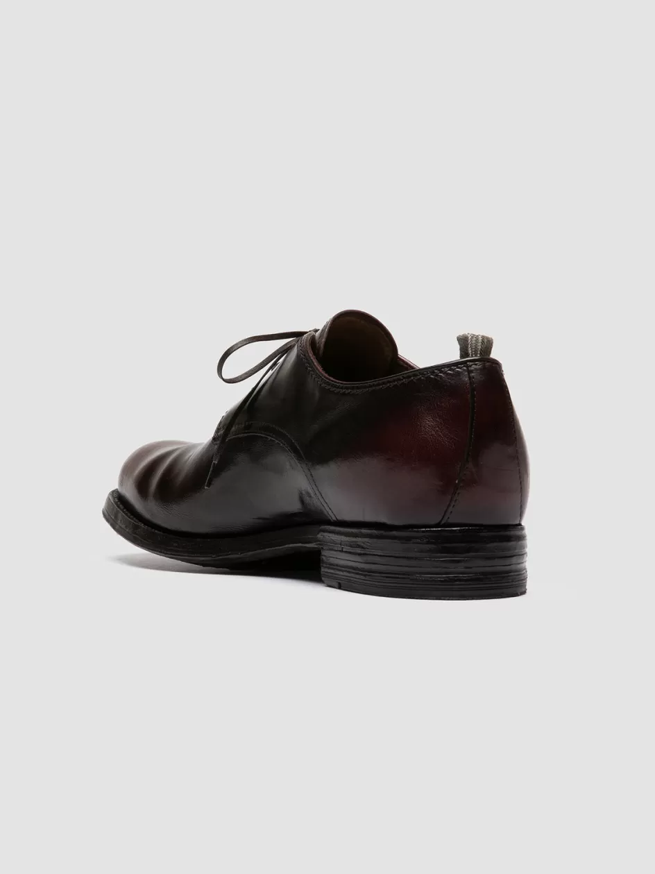 Handmade in Italy from premium leather, the Balance 019 derby shoes in burgundy feature a lace-up design with an airbrushed finish and a rubber-injected leather sole, blending durability with a refined aesthetic.