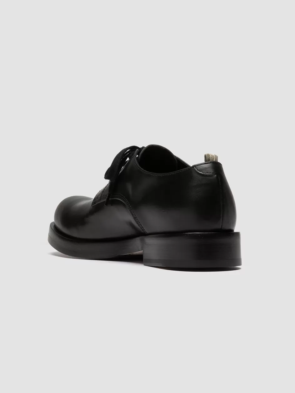 Emanating a contemporary yet gothic charm, the Bulla 001 derby shoes are expertly handcrafted in Italy from premium black leather, featuring a durable rubber-injected sole for enduring elegance and robust functionality.