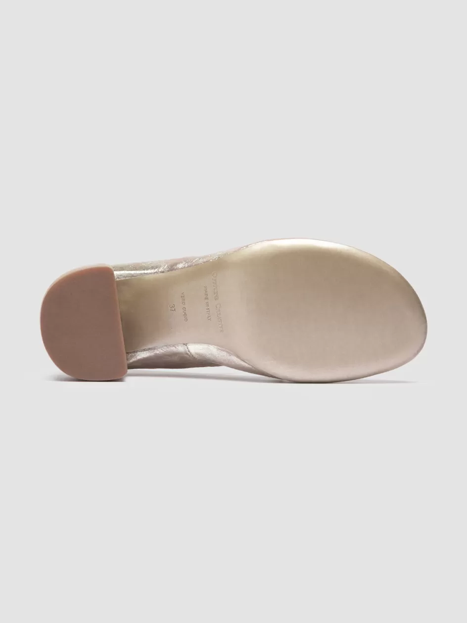 Handmade with the Italian ‘a sacchetto’ technique, the Flore 001 ballerina shoes redefine timeless elegance. These platinum leather flats are comfortable and flexible, and the inverted heel adds a subtle contemporary touch.