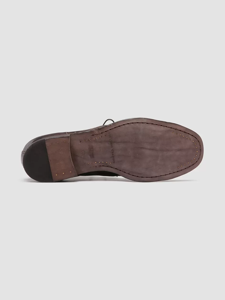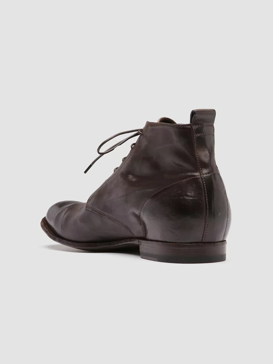 Comfortable and versatile our Stereo dark brown ankle boots stand out thanks to their refined vintage-effect smooth leather silhouette. They are carefully crafted by hand and feature thin waxed laces rounded almond toe leather heel pull tab and a durable leather sole with a stacked heel.