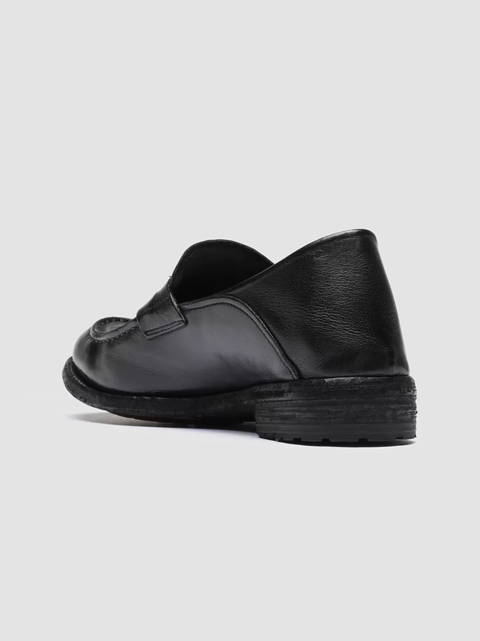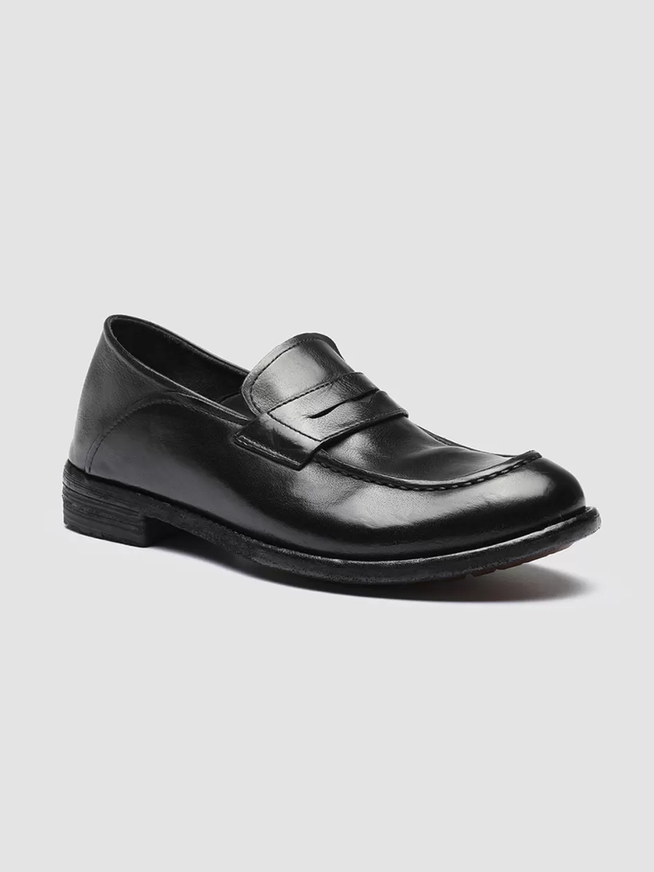 Comfortable and with a timeless casual elegance our Lexikon loafers are handcrafted from fine black smooth leather and feature a foldable back panel so you can also style them as slippers. They set on a stacked leather sole with tread rubber pads and reveal an almond toe highlighted by a flawless tone-on-tone stitching.