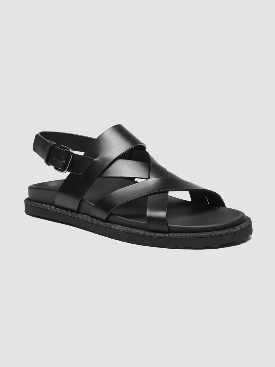 Our Charrat sandals are the perfect example of a contemporary handcrafted sandal. Expertly made from premium smooth black leather, they reveal a multiple criss-cross strap design, rounded toe, adjustable back strap and a sporty twist rubber sole with non-slip bottom.