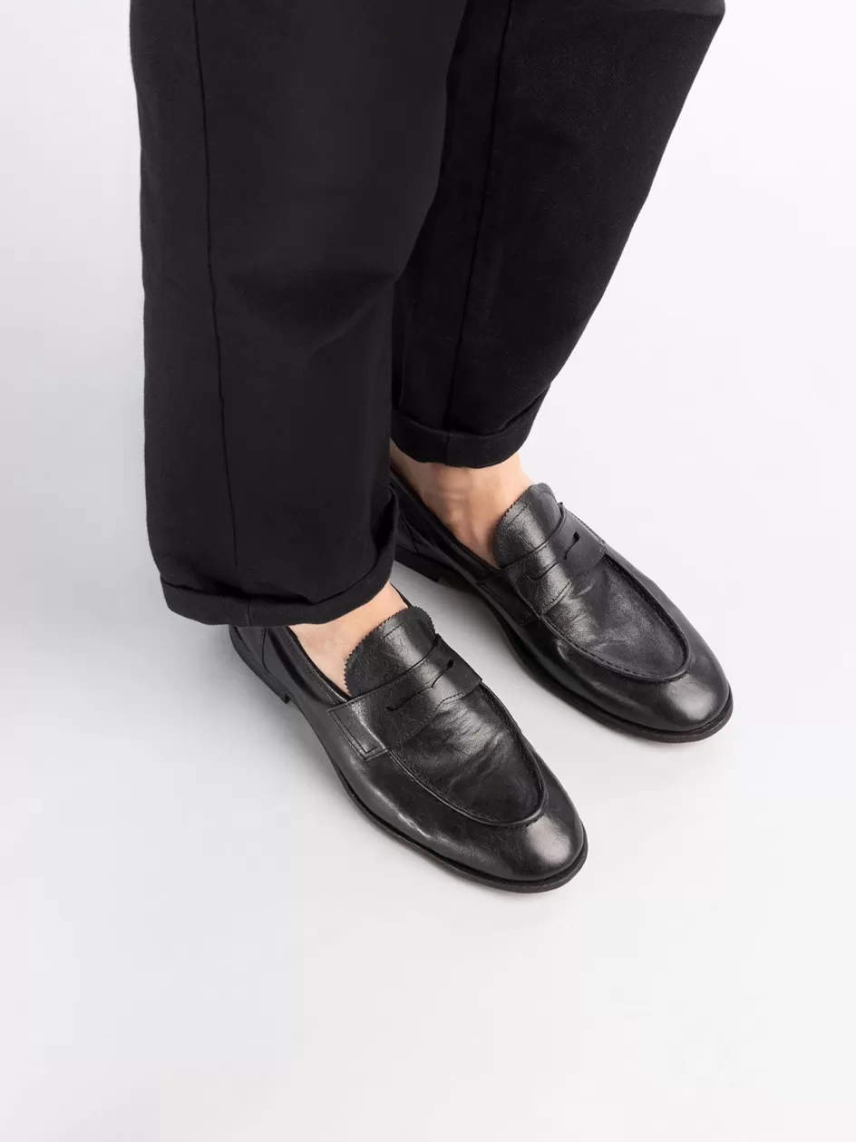A classic reimagined for the contemporary wardrobe. Handmade in Italy, the Solitude 001 penny loafers feature a black leather silhouette with unlined interior that speaks to a relaxed yet sophisticated aesthetic. Anchored by a durable leather sole, these loafers are both elegant and ready for the rhythm of daily life.