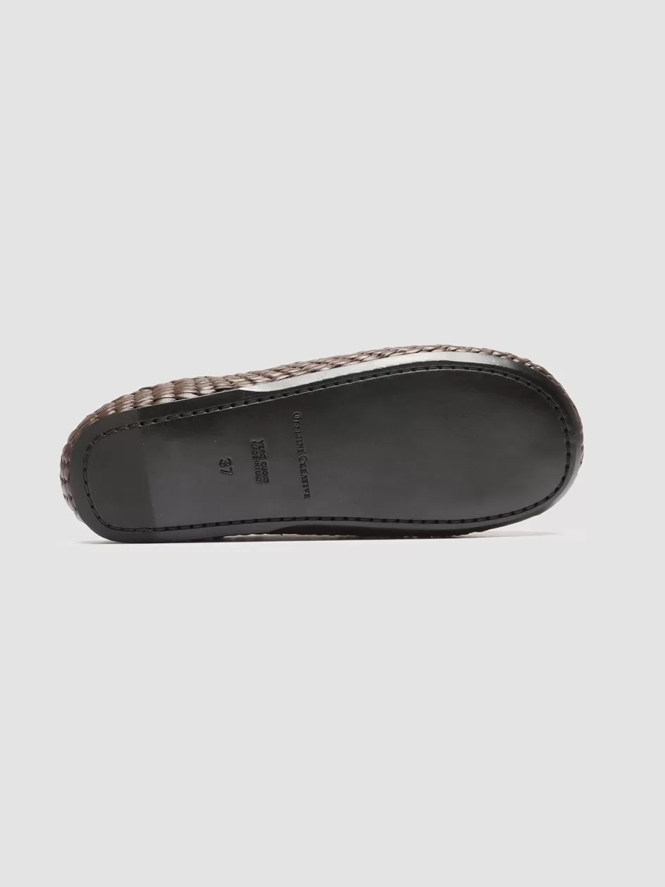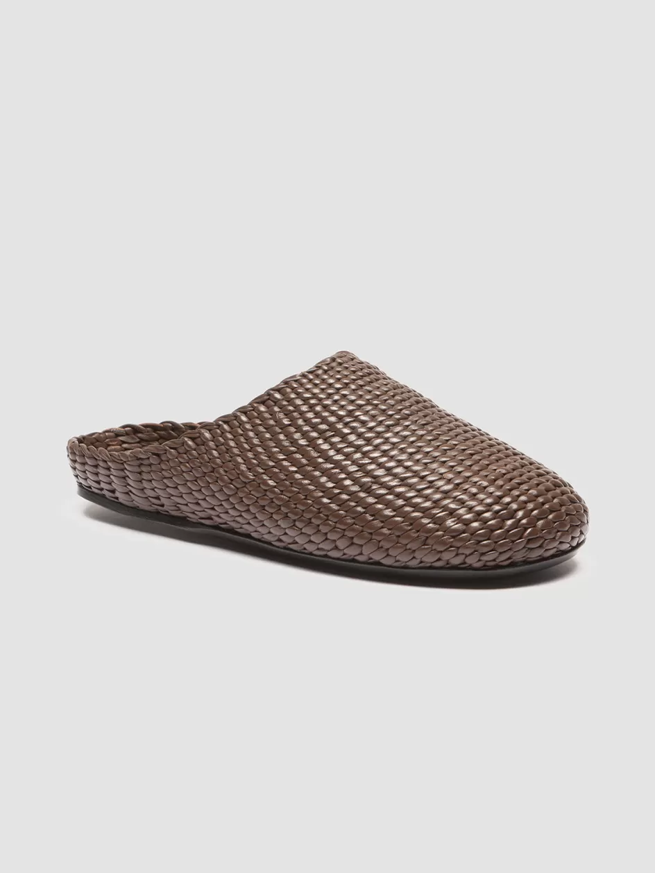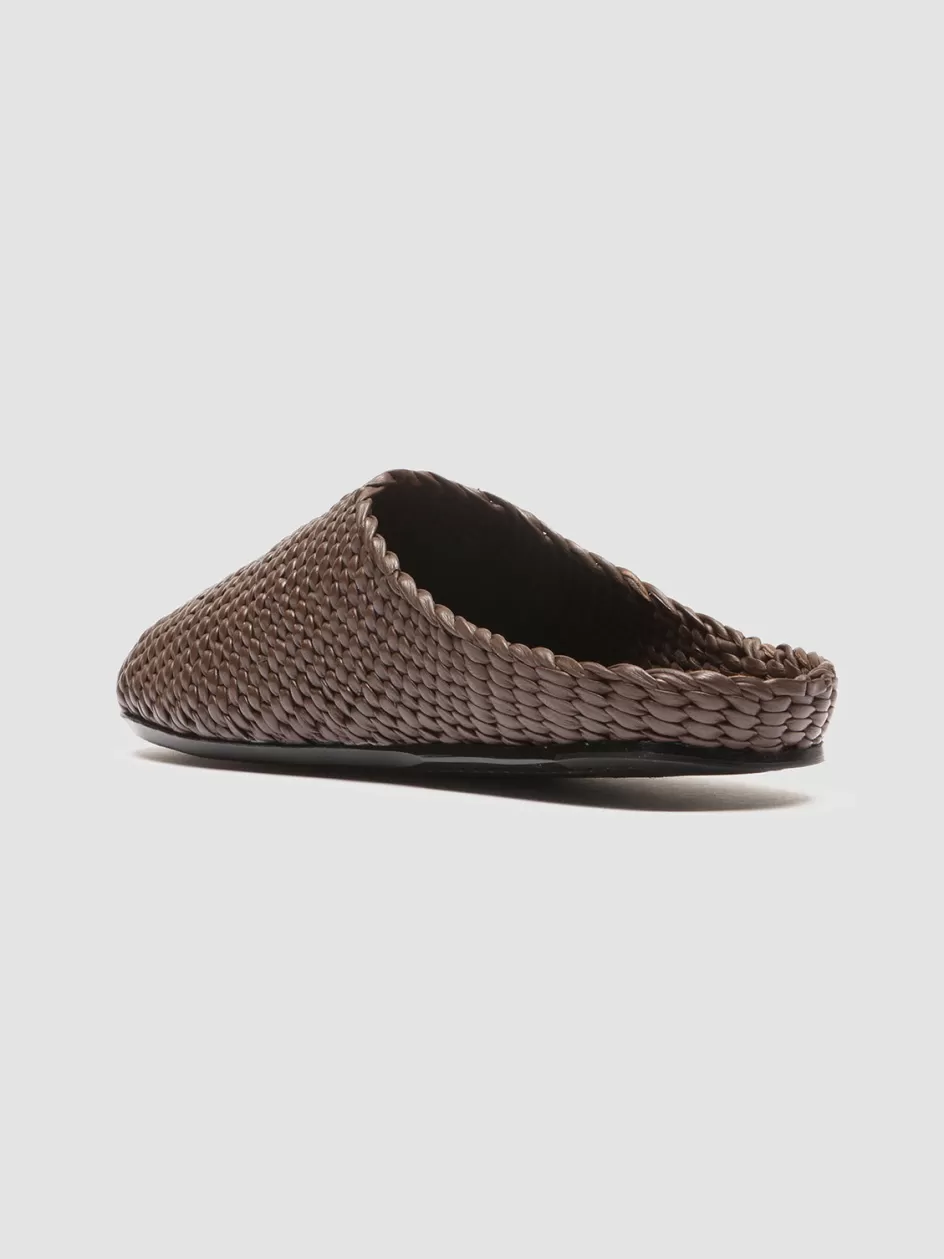 Our Polly flat mules stand out with their finely woven off-white leather upper. Made entirely by hand by our skilled craftsmen, they feature a rounded toe, woven insole with logo-label and a thin black rubber sole.