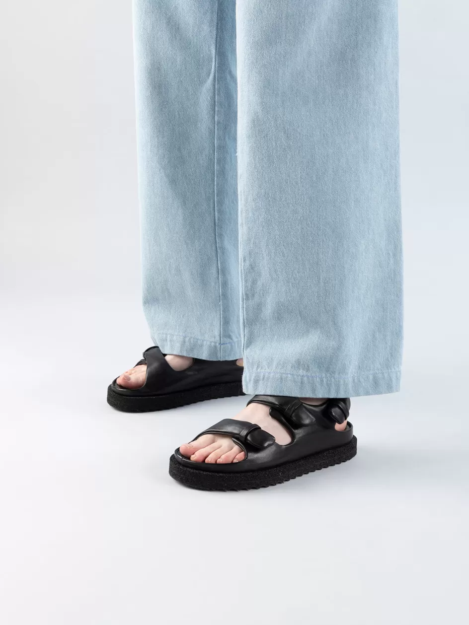 Embrace minimalist boldness with the Sands 102 sandals. Handcrafted in Italy in exquisite black leather, they present a monolithic design that commands presence, with clean lines and a dynamic loop closure. The Rubrex sole is a testament to durability, merging seamlessly with the model’s powerful aesthetic.