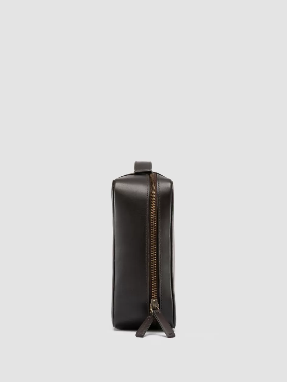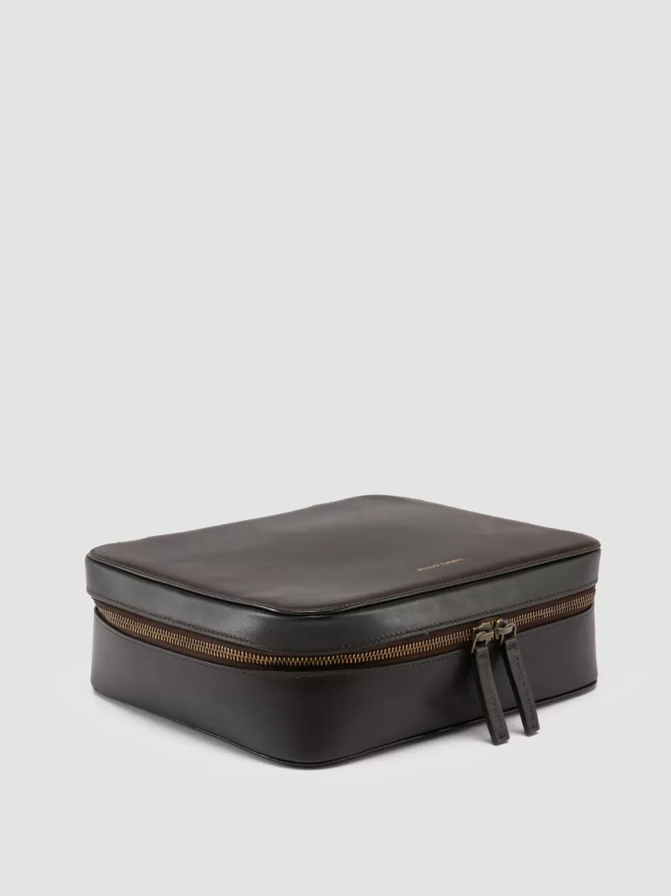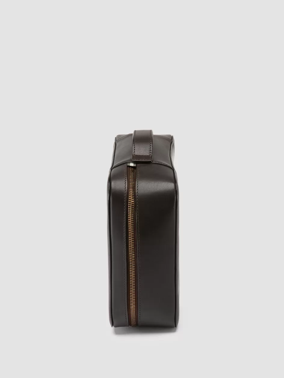 Crafted from the finest leather in shades of dark brown, our luxurious travel case has been carefully airbrushed to achieve the perfect artisanal shade. Closed by a wraparound two-way zip and embellished with our gold-tone logo, it reveals three specific compartments to keep your staff organized. This versatile piece is stylish and functional, allowing you to carry your belongings with ease and sophistication.