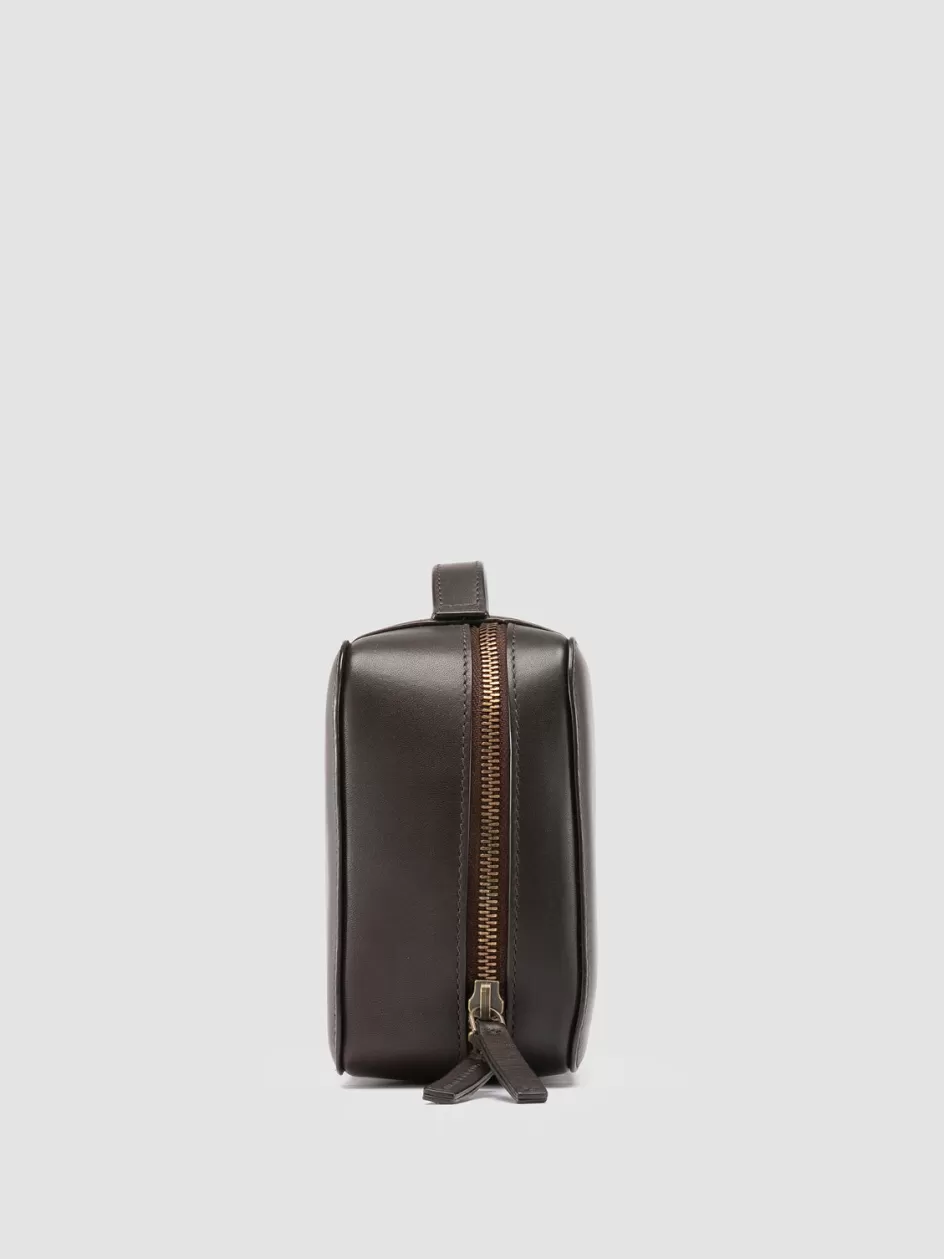 Crafted from the finest leather in shades of dark brown, our luxurious travel bag has been carefully airbrushed to achieve the perfect artisanal shade. Closed by a wraparound two-way zip and embellished with our gold-tone logo, it reveals three specific compartments to keep your staff organized. This versatile piece is stylish and functional, allowing you to carry your belongings with ease and sophistication.