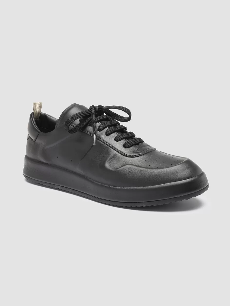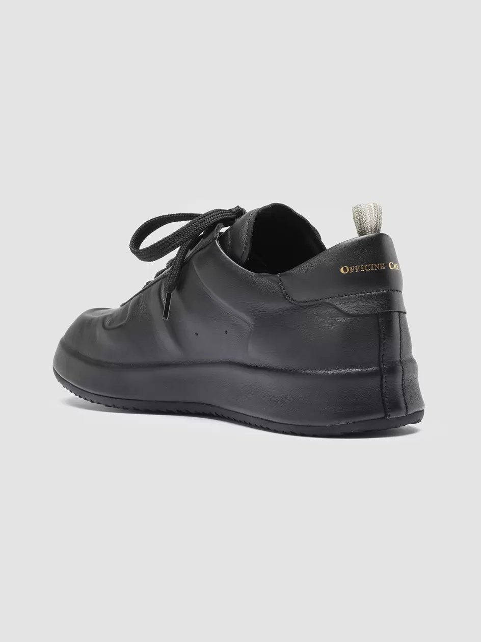 Comfortable and versatile our Ace sneakers highlight a a minimal attitude craftsmanship. They are handcrafted from fine black leather and feature a rubber built-in sole with black tread outsole cotton laces gold-tone lettering logo at the tongue and at heel patch and our signature grosgrain loop tab.