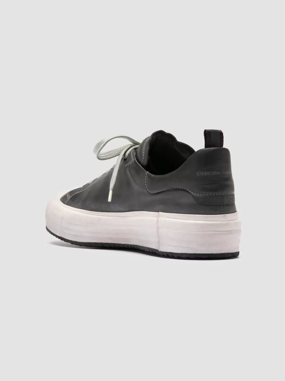The Mes DD 001 sneakers blend retro charm with luxe craftsmanship. Handmade in Italy from grey leather, they sport a distinct stitched upper with deep-dyed finish, set on encased rubber sole for effortless aesthetic and comfort.