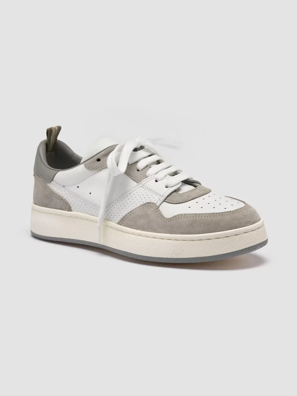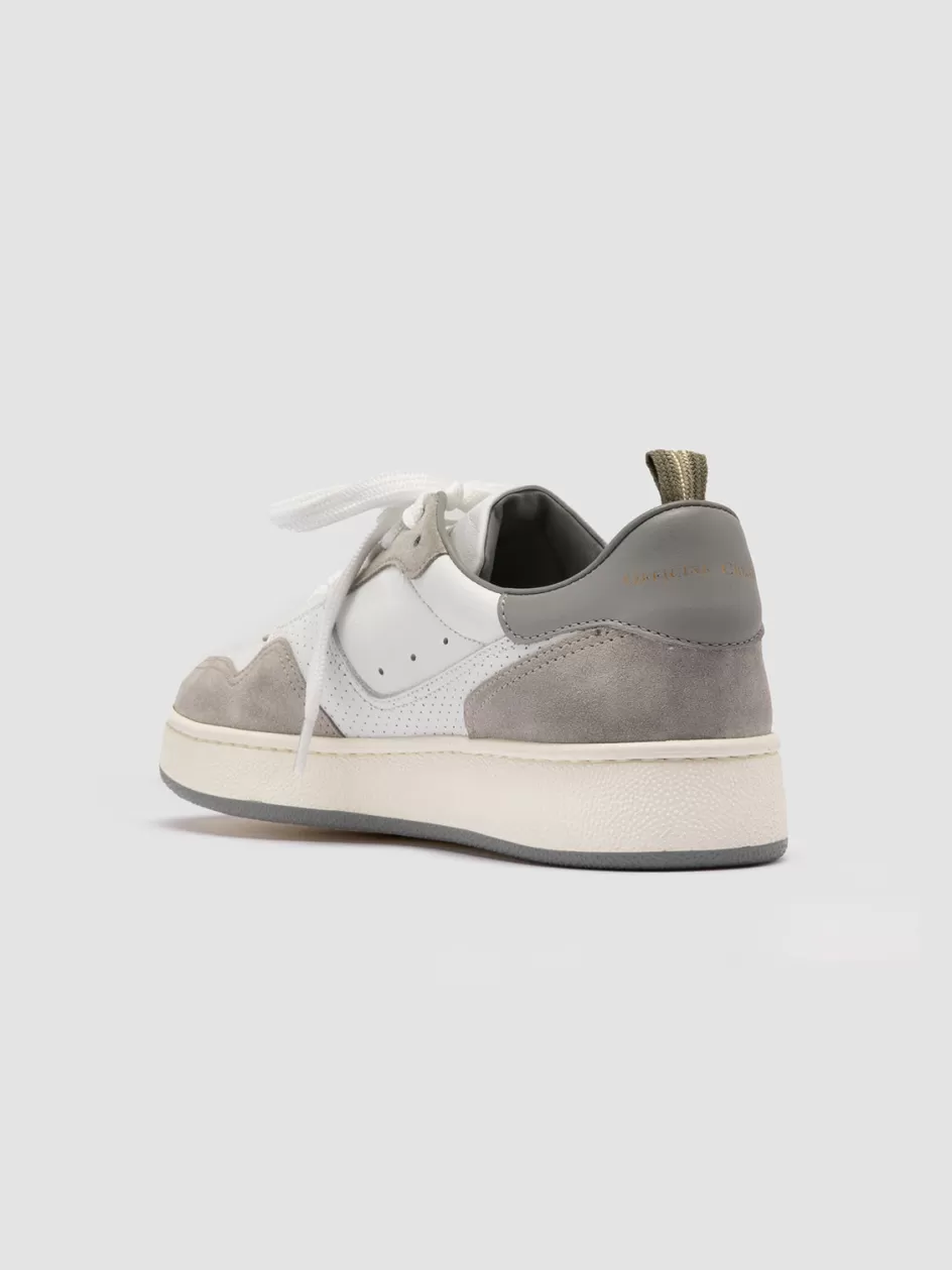 The Mower 120 low top sneakers redefine casual elegance, featuring a tasteful white leather silhouette with grey suede inserts and rubber sole in the same colour. Handcrafted in Italy for daily wear, the perforated detailing on these shoes enhances air flow, blending function with a fashionable aesthetic.