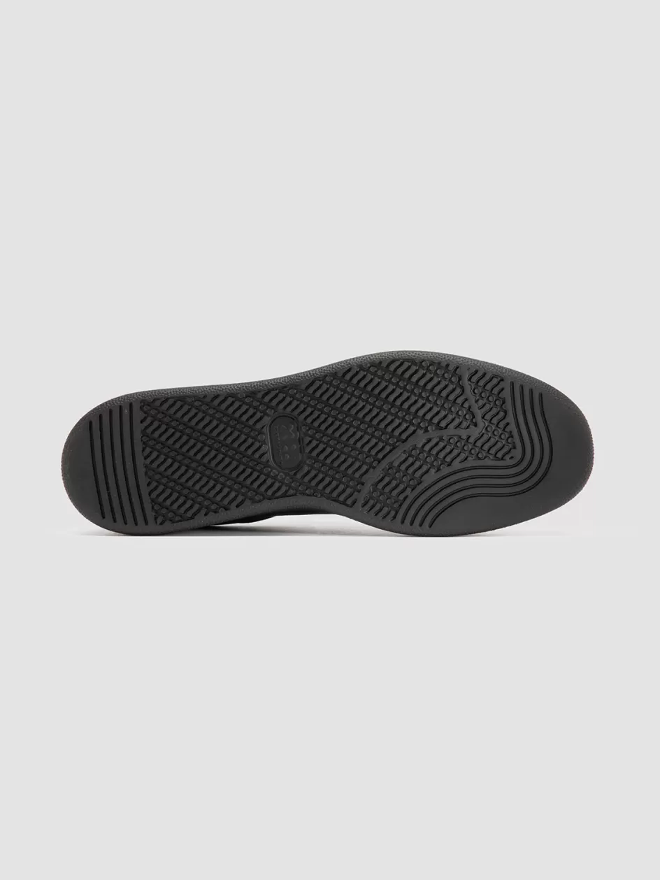 A sleek response to the refined tastes of the OC clientele, the Answer 004 high top sneakers are handmade in Italy from black suede, featuring a contrasting leather heel patch and details, and a sturdy rubber sole for durability. CODE THE ANSWER/004_S.NBK/GIAN_TONAL_DIRTY_NERO