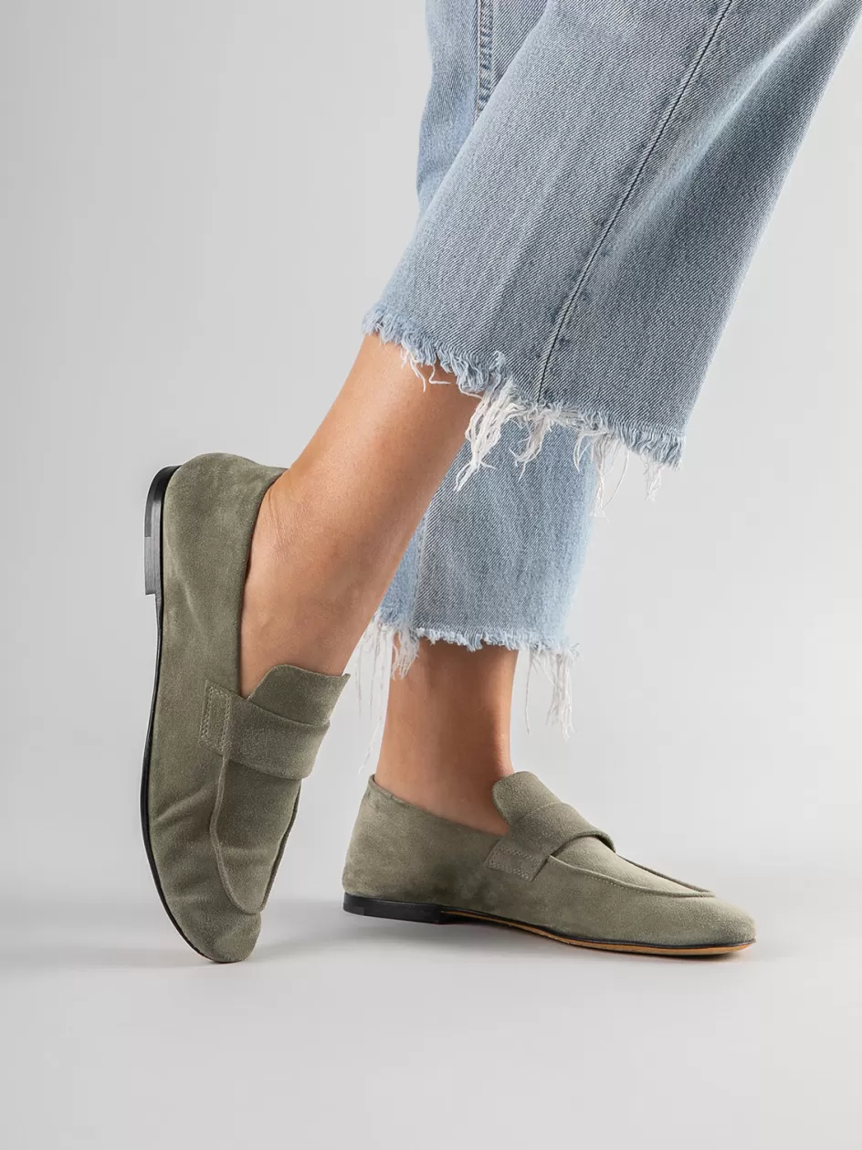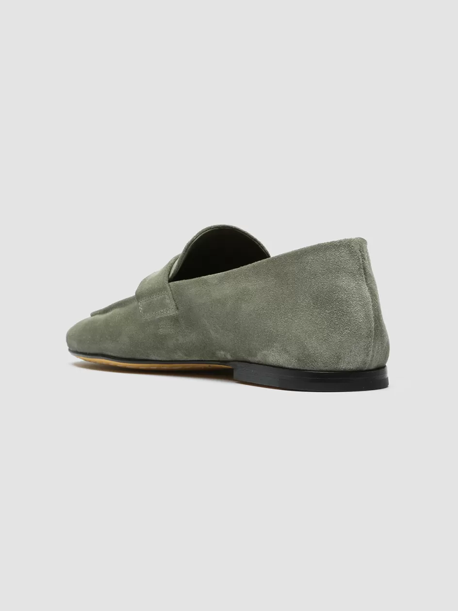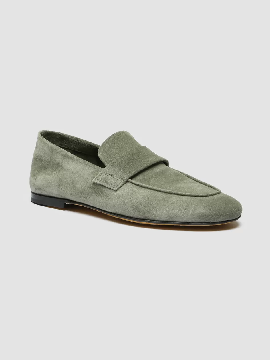 Ideal for a refined effortless style, our Blair loafers are handcrafted from supple green suede. They feature a rounded almond toe, front strap and a flat sole with a very low heel.