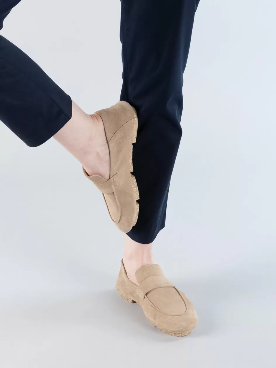 Great for leisure wear, our C-Side loafers can also be worn as slides thanks to the foldable back panel. They are handcrafted from supple taupe suede and feature an almond toe, classic front strap and a thin block rubber sole.