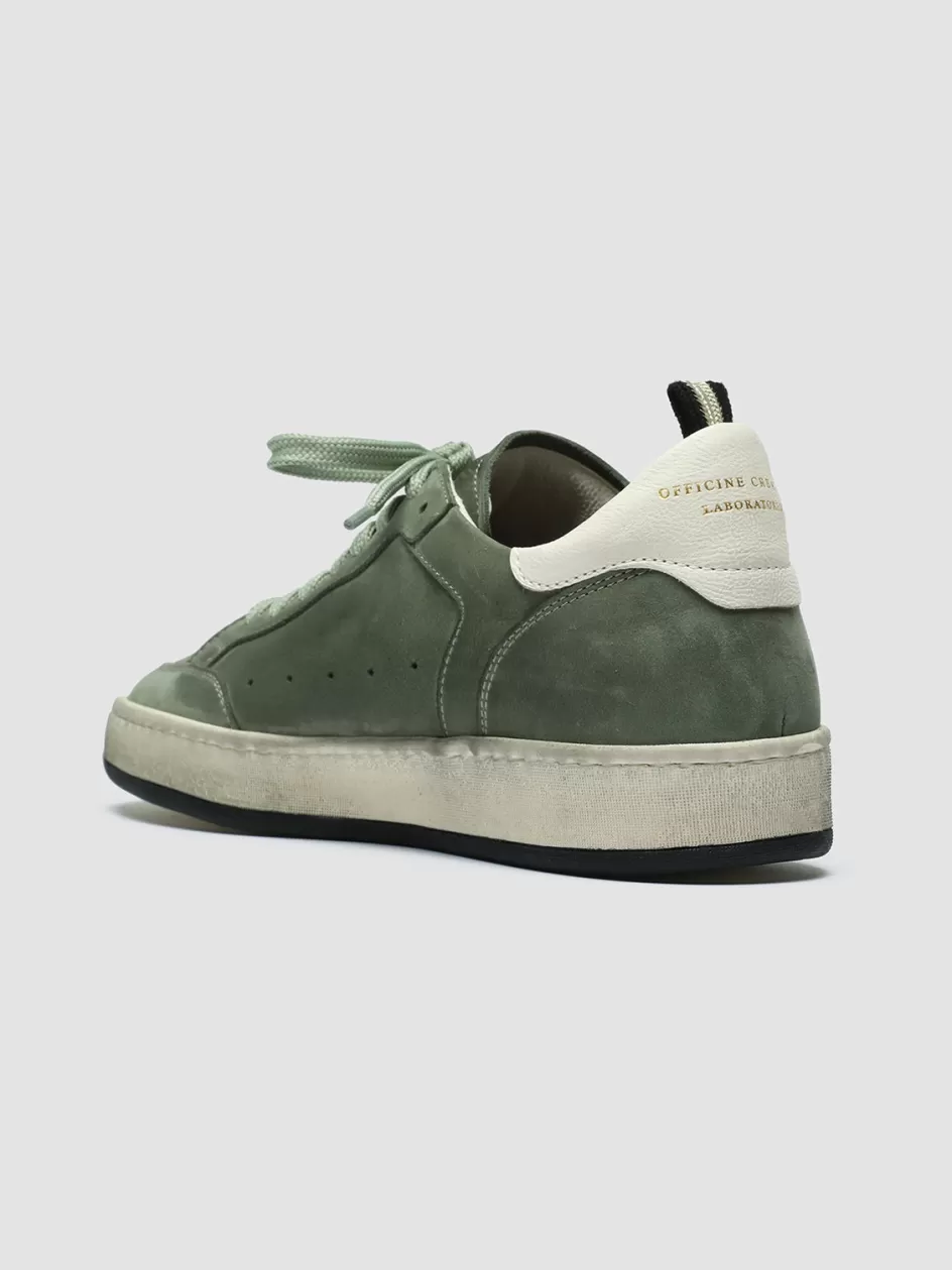 Taking design cues from low-top court styles, our Magic 102 green suede and leather sneakers are a timeless choice for everyday wear. Set on natural rubber soles for comfort, they’re finished with airflow-enhancing perforations and subtly detailed with our logo in gold lettering.