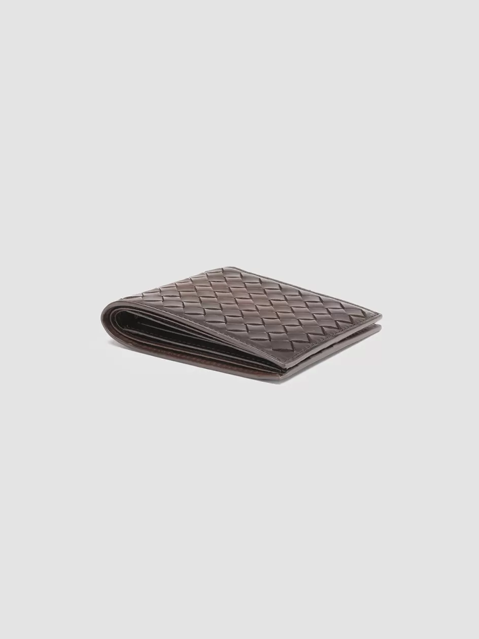 Our sleek Boudin bifold wallet feature a woven leather outside and a smooth leather interior and is truly unique thanks to the airbrushed finish in shades of dark brown. It reveals multiple card slots and bill compartment for a perfect organization of all your documents and our gold-tone lettering logo print.
