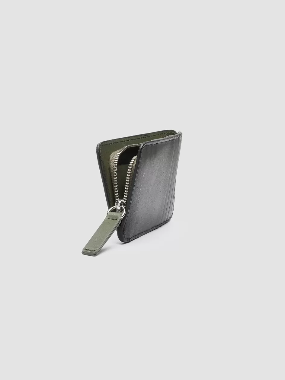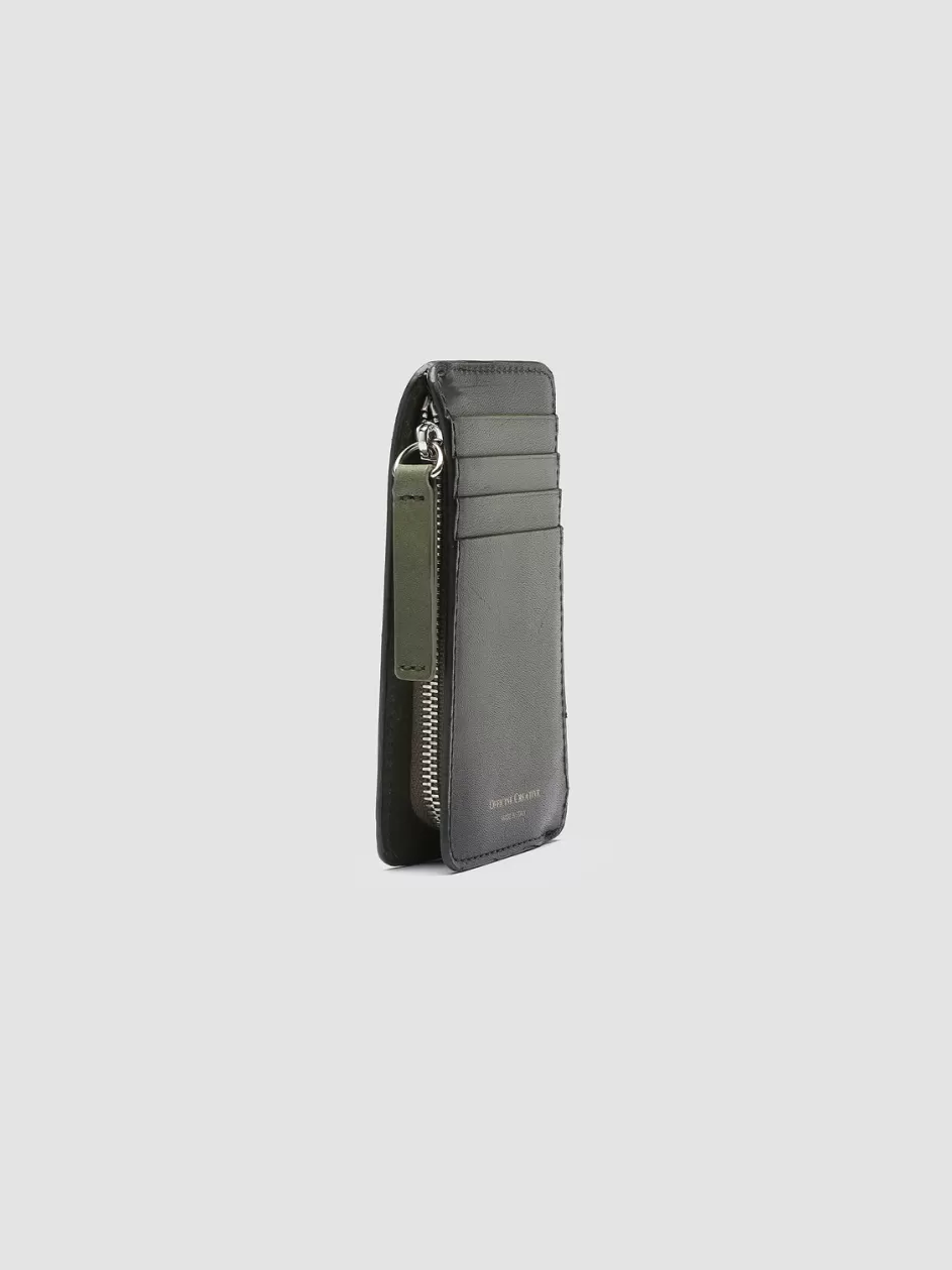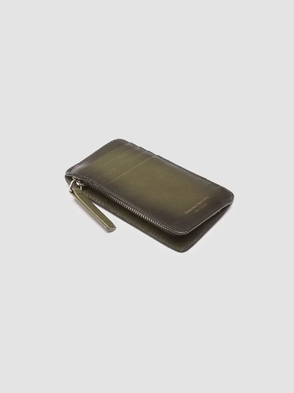 Handcrafted from fine smooth leather our Bergé card holder is unique thanks to the airbrushed finish in shades of green. It features our gold-tone lettering logo printed at the front four card slots and a practical zipped compartment in silver-tone metal.