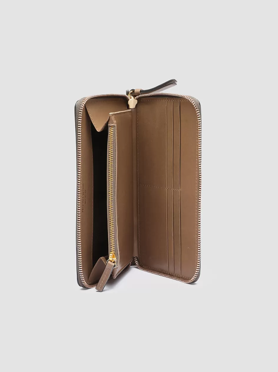Our handcrafted Juliet wallet reveals a classic and practical design. Handcrafted from premium smooth tan leather it features our sleek gold-tone lettering logo printed at the front zip around fastening one interior zip pocket one open compartment and multiple card slots.