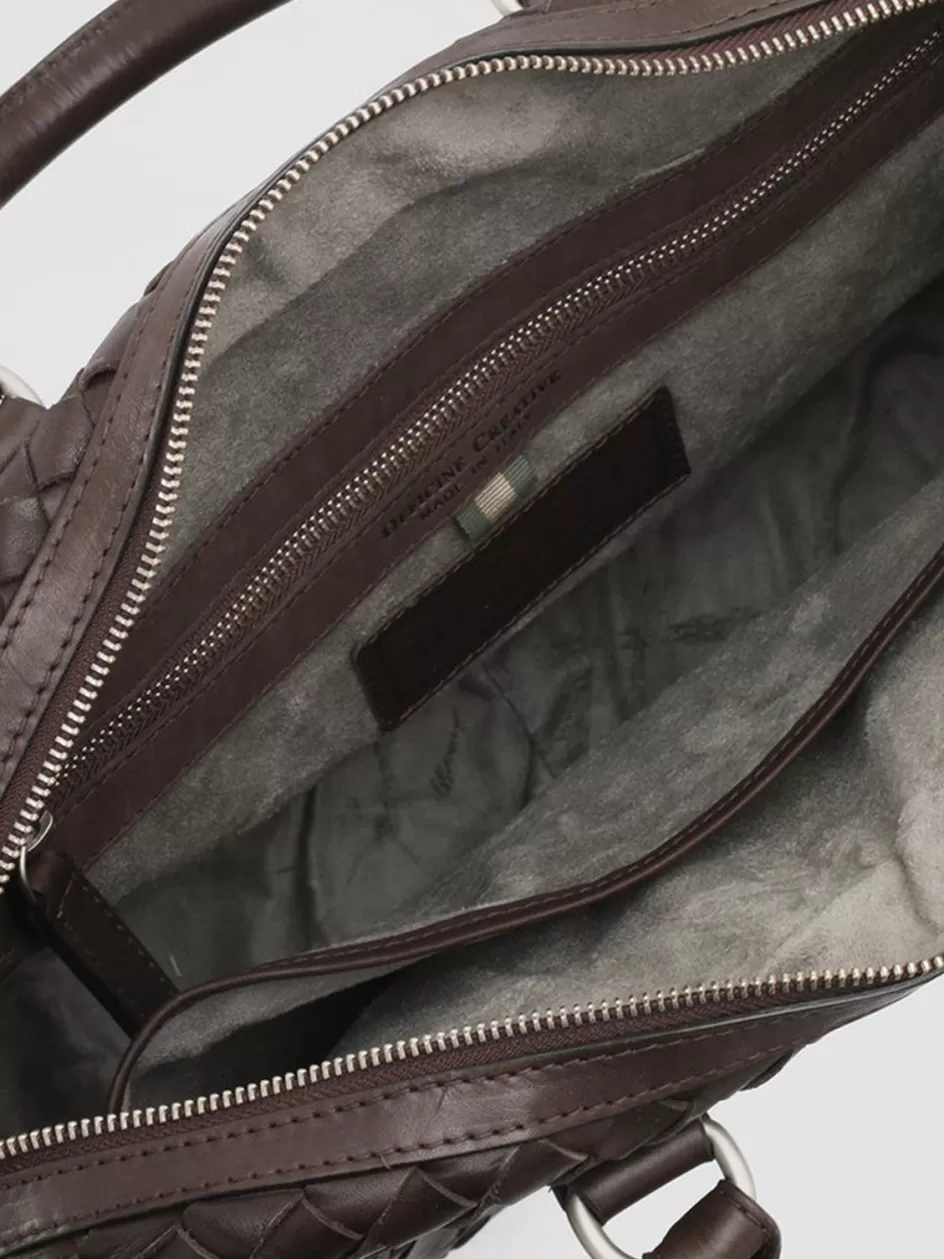 Sleek and practical, our Armor bag mixes business style with timeless design. Hand-woven using premium leather, it features two top handles, a vertical front zip pocket, a main compartment with double-slider zip and internal pockets, plus an adjustable and detachable shoulder strap.